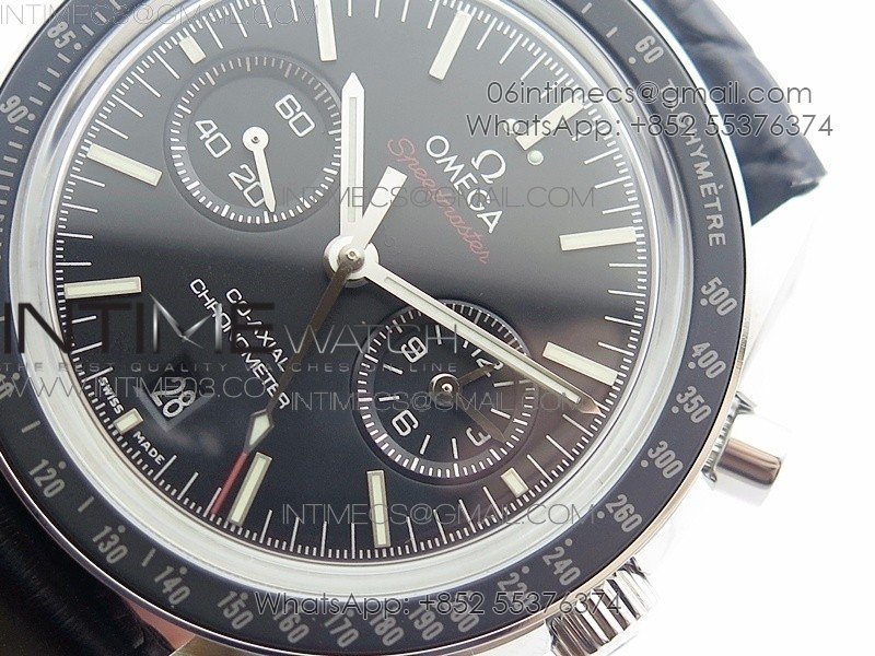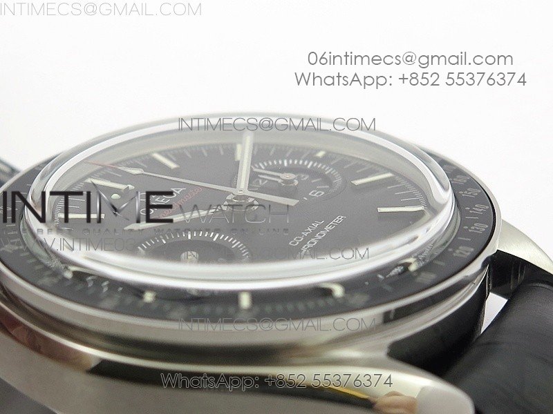 SpeedMaster MoonWatch SS V2 OMF 1:1 Best Edition Black Dial Red Words on Black Leather Strap A9300