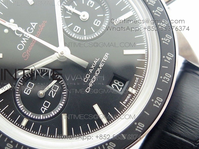 Movement    Asian 7750 automatic chronograph movement decorate to Omega 9300 movement with the black balance wheel, 2 hands on 3 clock sub dial can work as per genuine.