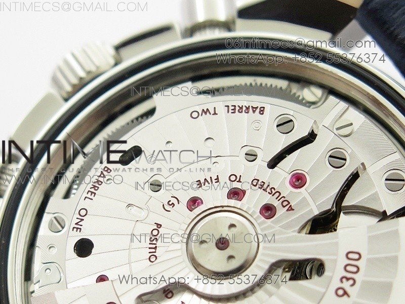 Movement Asian 7750 automatic chronograph movement decorate to Omega 9300 movement with the black balance wheel, 2 hands on 3 clock sub dial can work as per genuine.