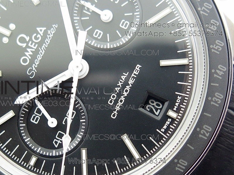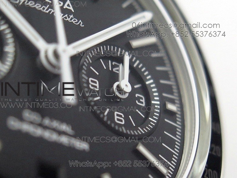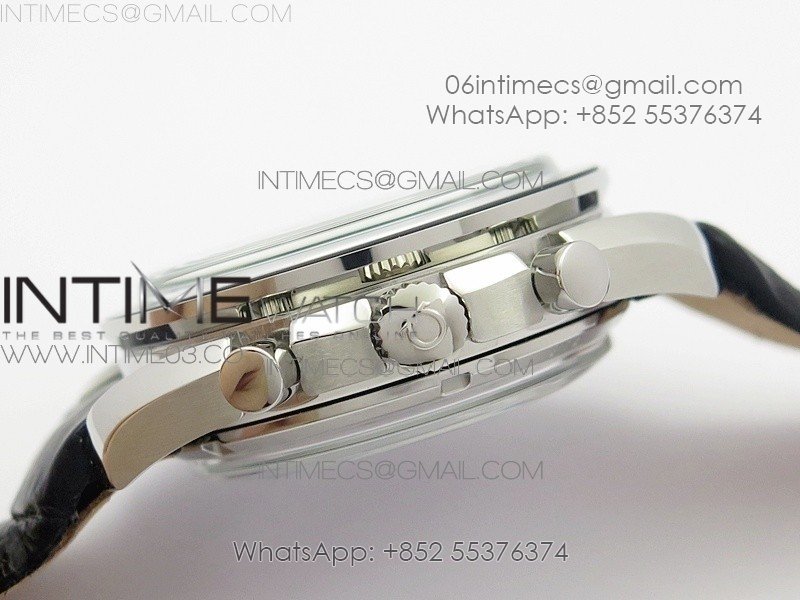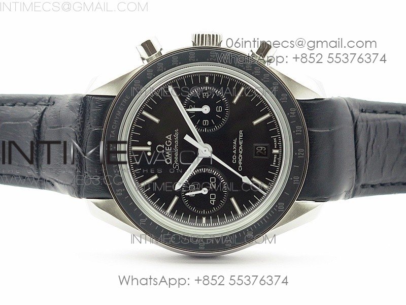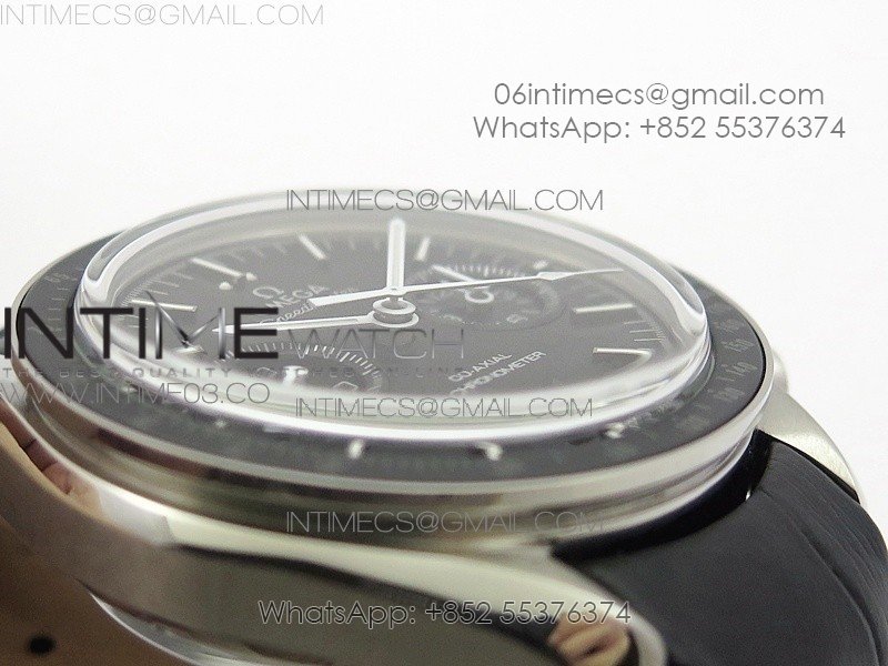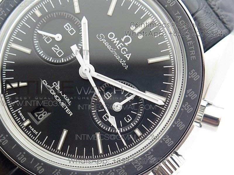 SpeedMaster MoonWatch SS V2 OMF 1:1 Best Edition Black Dial White Handset on Black Leather Strap A9300