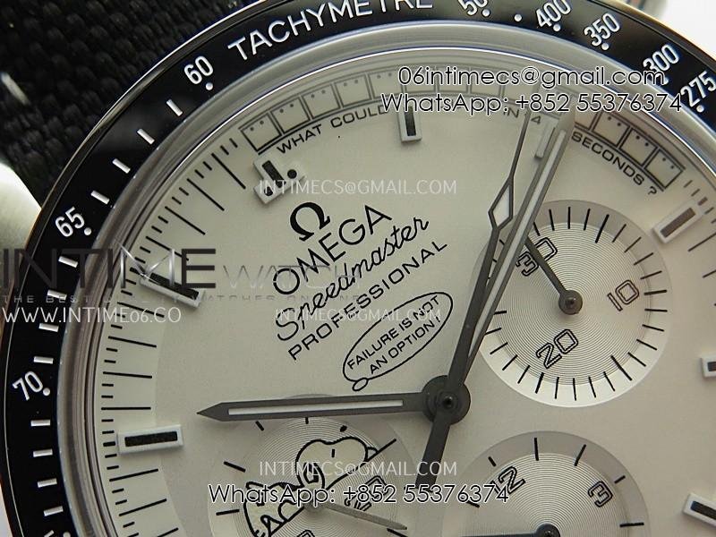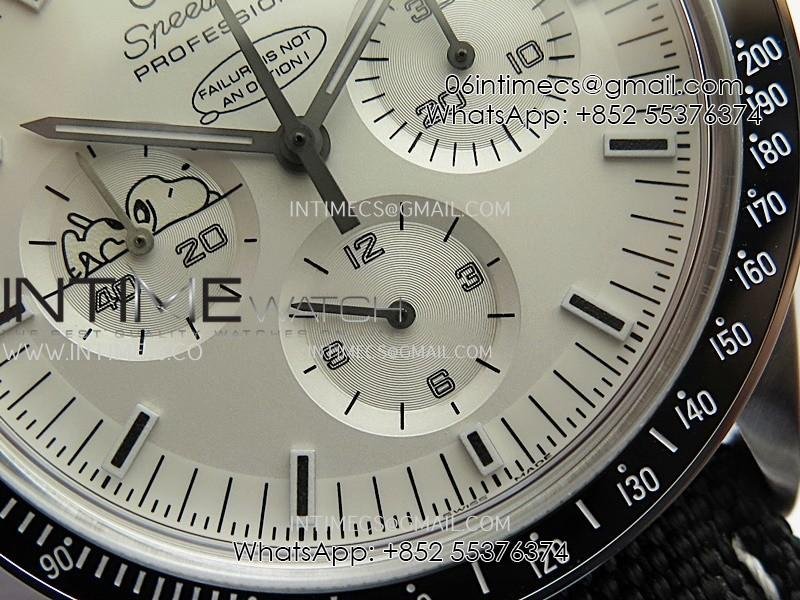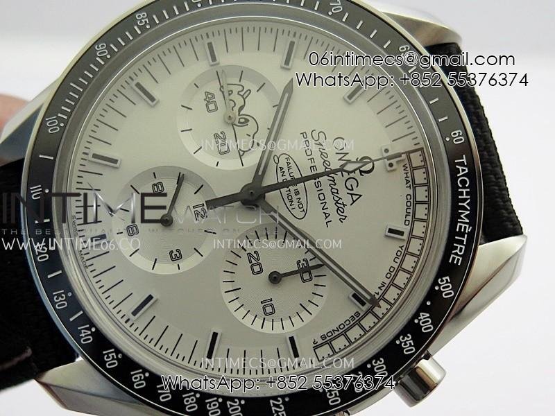 Speedmaster Professional Snoopy SS SMF 1:1 Best Edition Silver Dial Black Marker On Black Nylon Strap A3861(Free SS Bracelet)