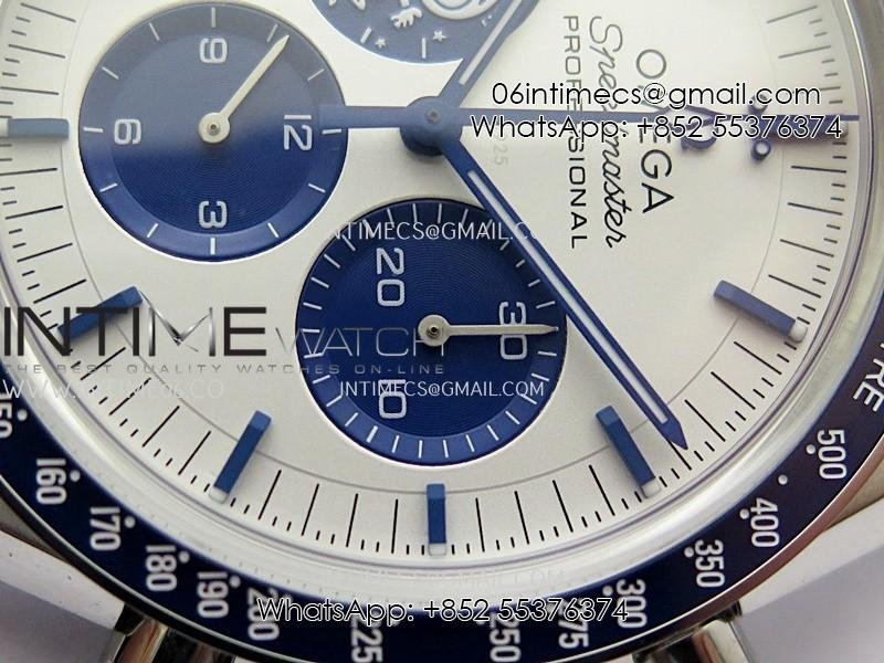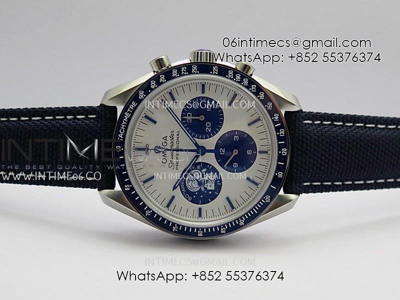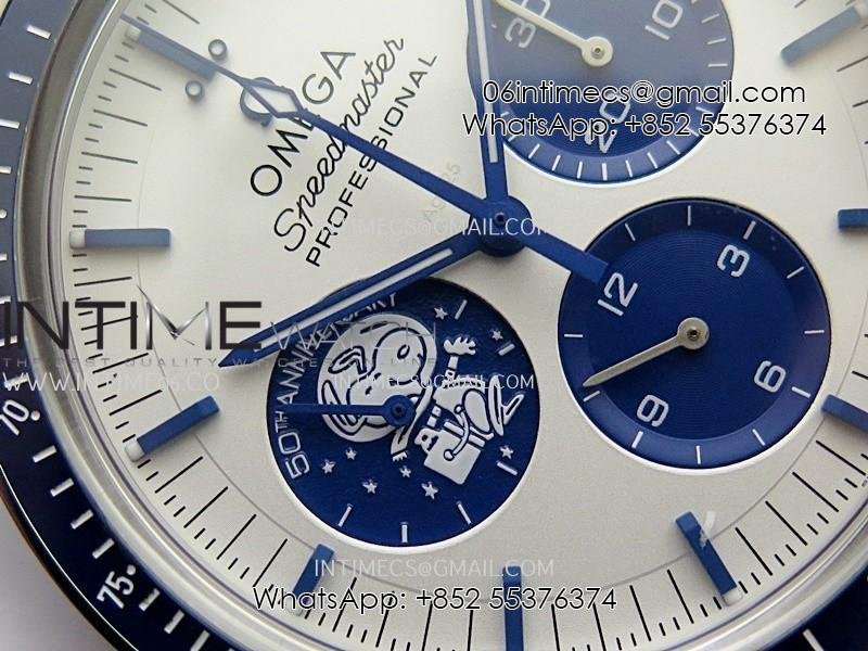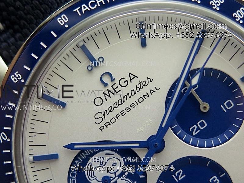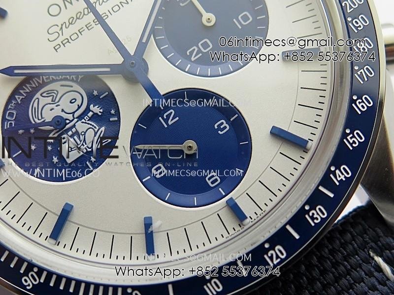 Speedmaster Professional Snoopy SS SMF 1:1 Best Edition Silver Dial Blue Marker On Blue Nylon Strap A3861(Free SS Bracelet)