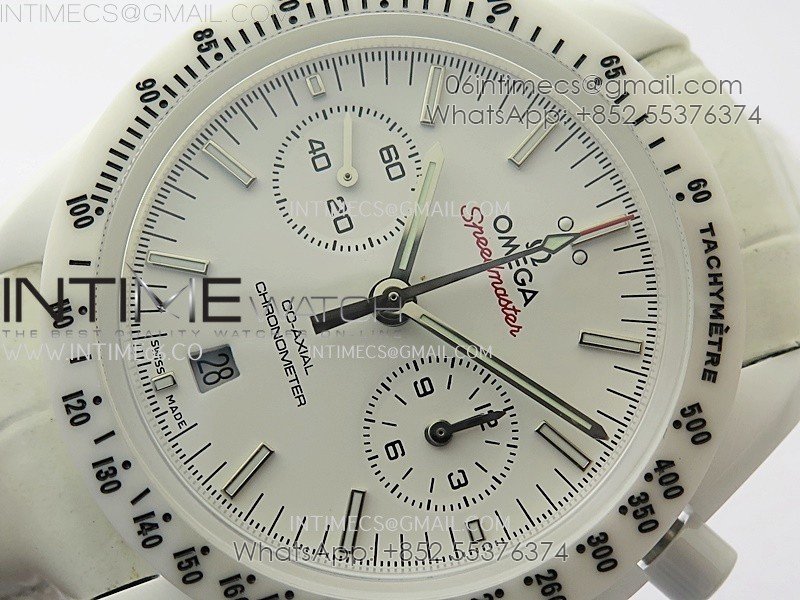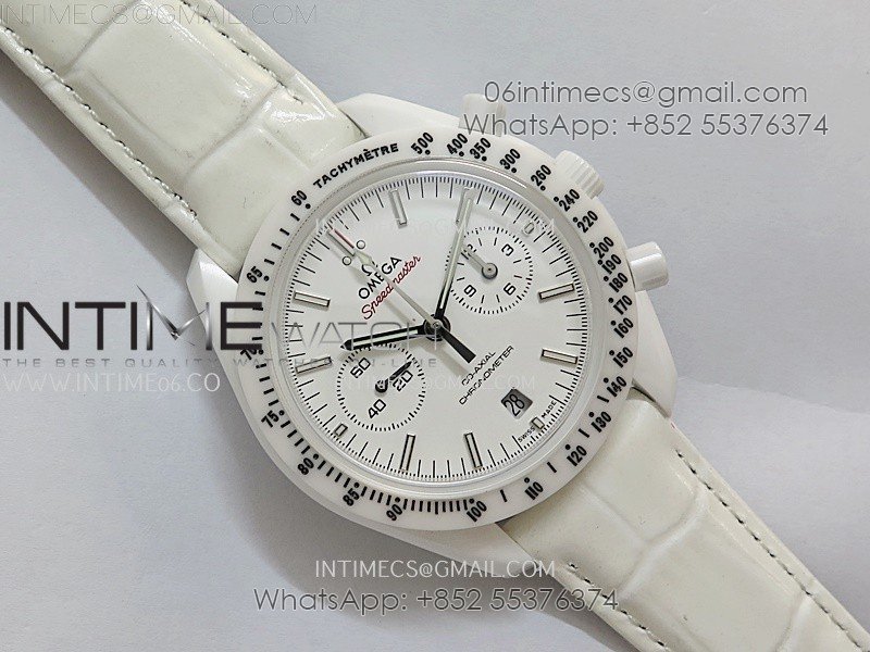 Speedmaster White Side Of The Moon Real White Ceramic N1F 1:1 Best White Dial on Leather Strap A9300