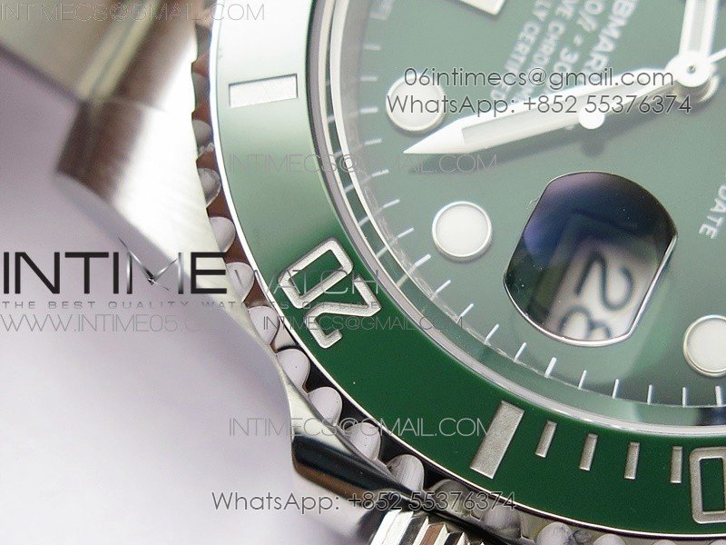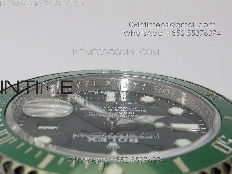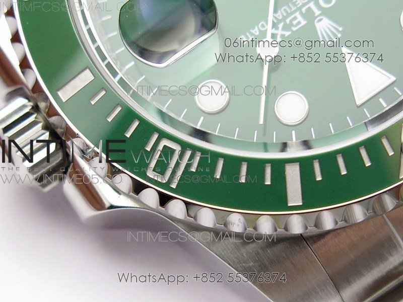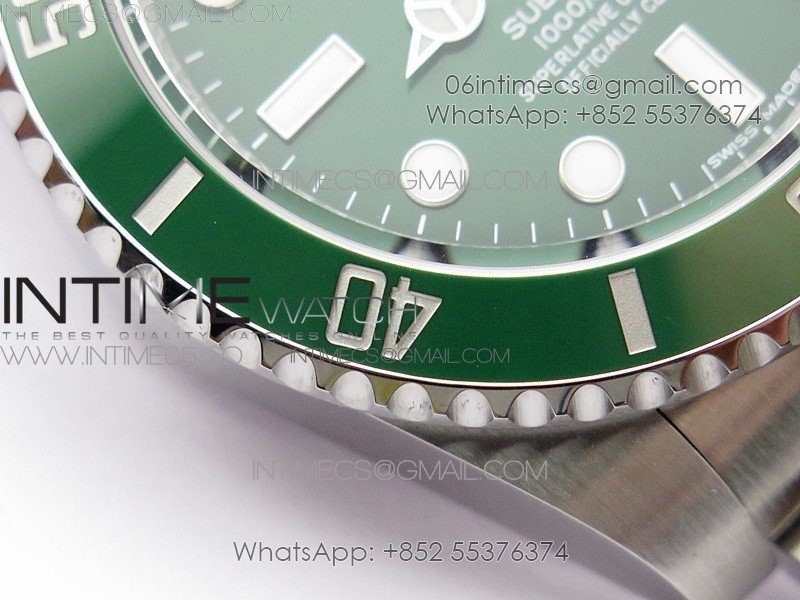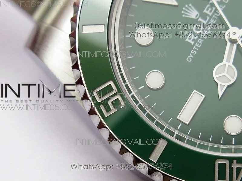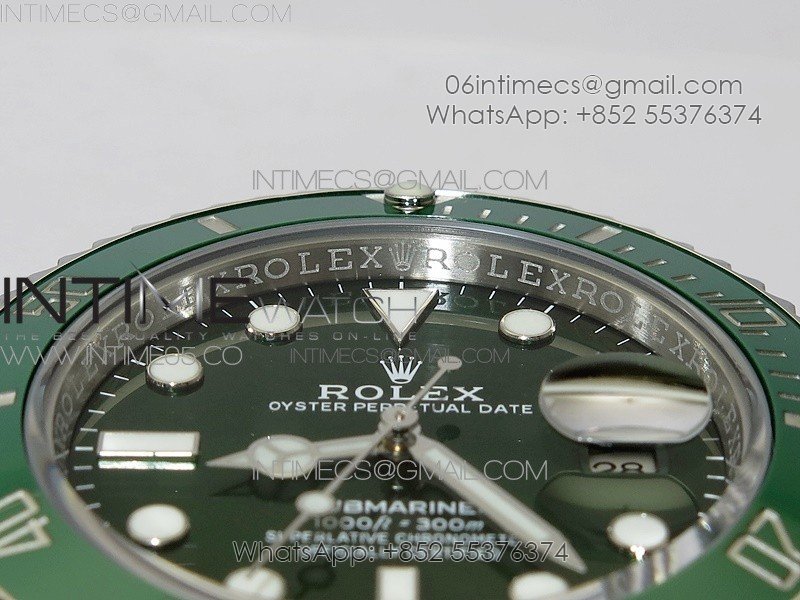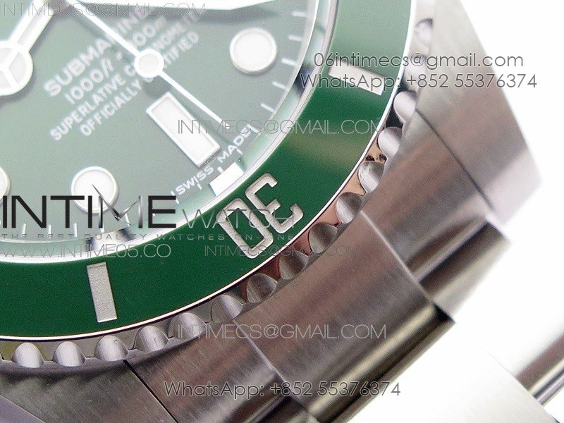 Bezel The latest ‘Clean Bezel Insert’, Very close to genuine green color ceramic bezel, uni-directional rotating with platinum plated correct markers