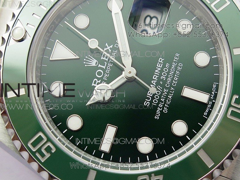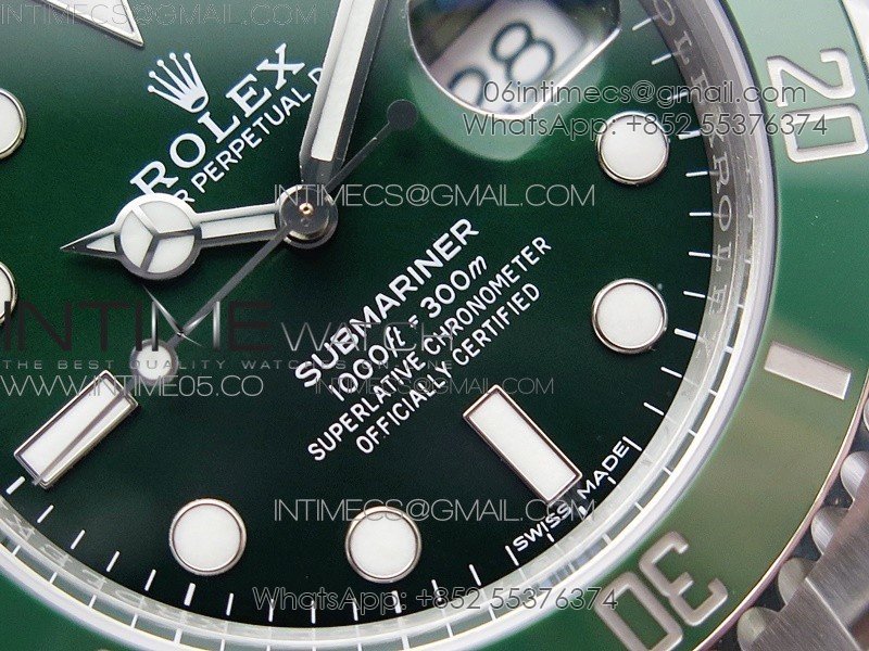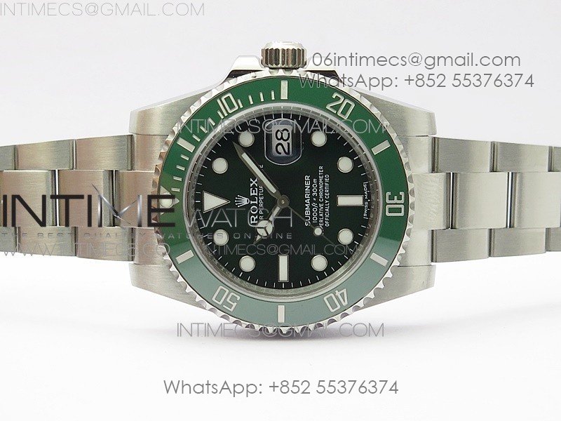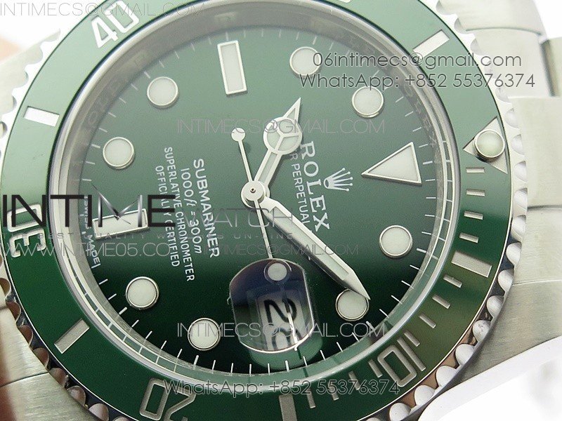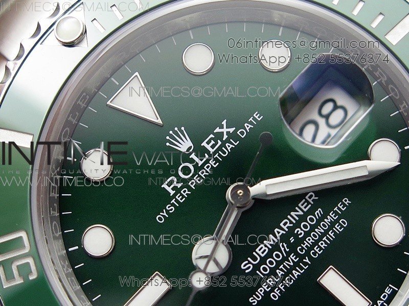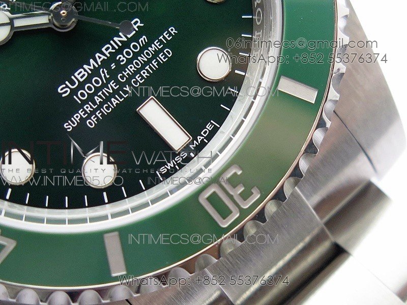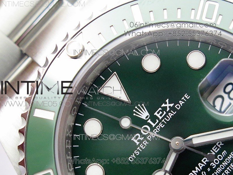 Bezel The latest ‘Clean Bezel Insert’, Very close to genuine green color ceramic bezel, uni-directional rotating with platinum plated correct markers