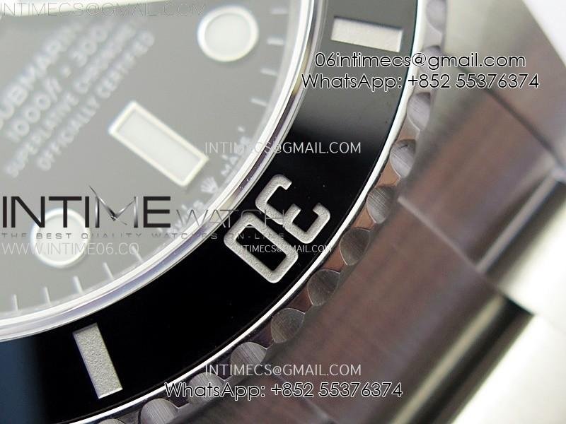 Bezel     Uni-directional rotating black ceramic bezel, very close to genuine green color (The CF newest bezel version)