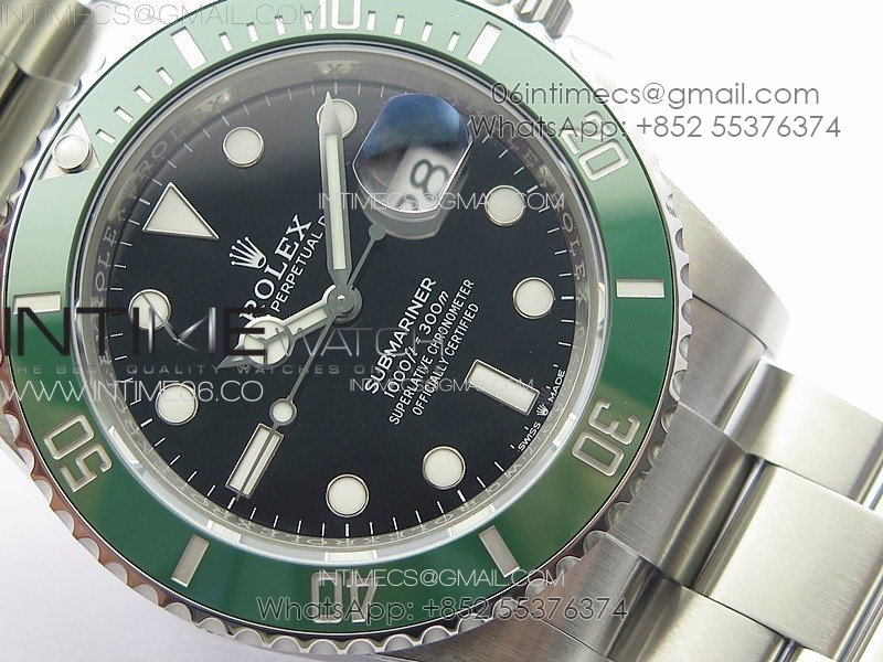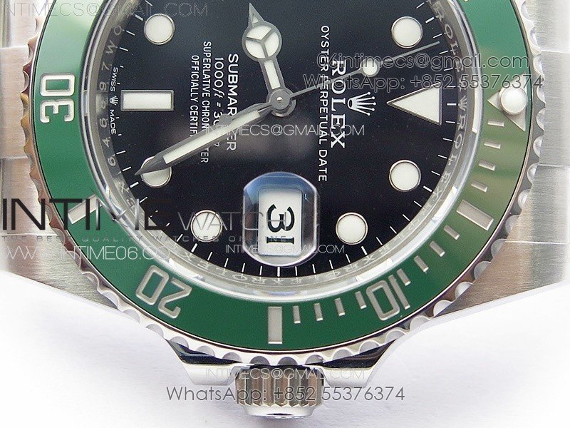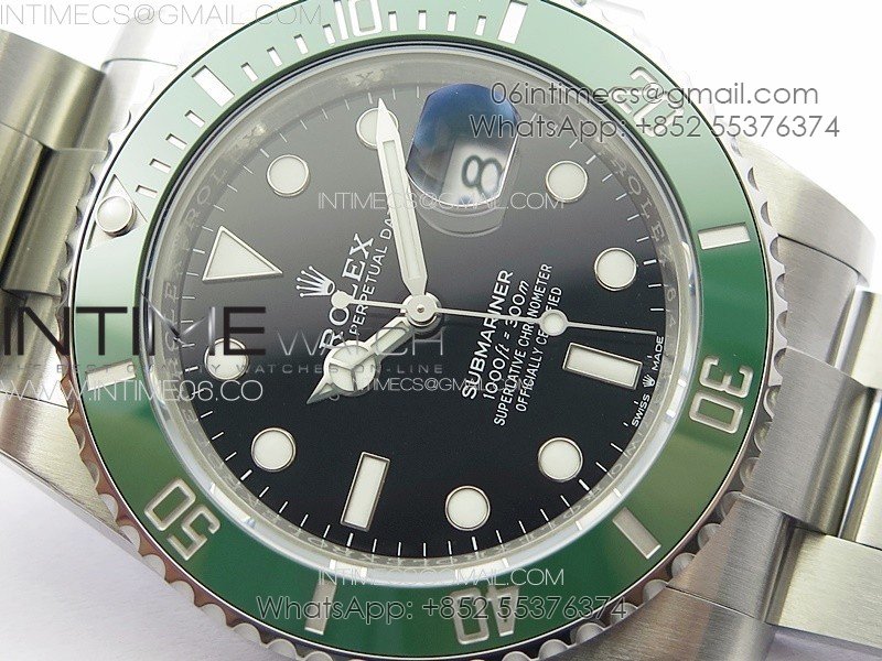 Bezel Uni-directional rotating green ceramic bezel, very close to genuine green color (The CF newest bezel version)