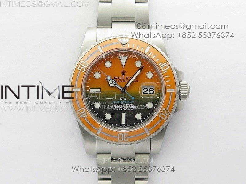Submariner DIW Sandblasted VSF 1:1 Best Edition Orange Ceramic Bezel Orange/Black Dial on SS Bracelet VS3135