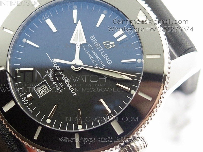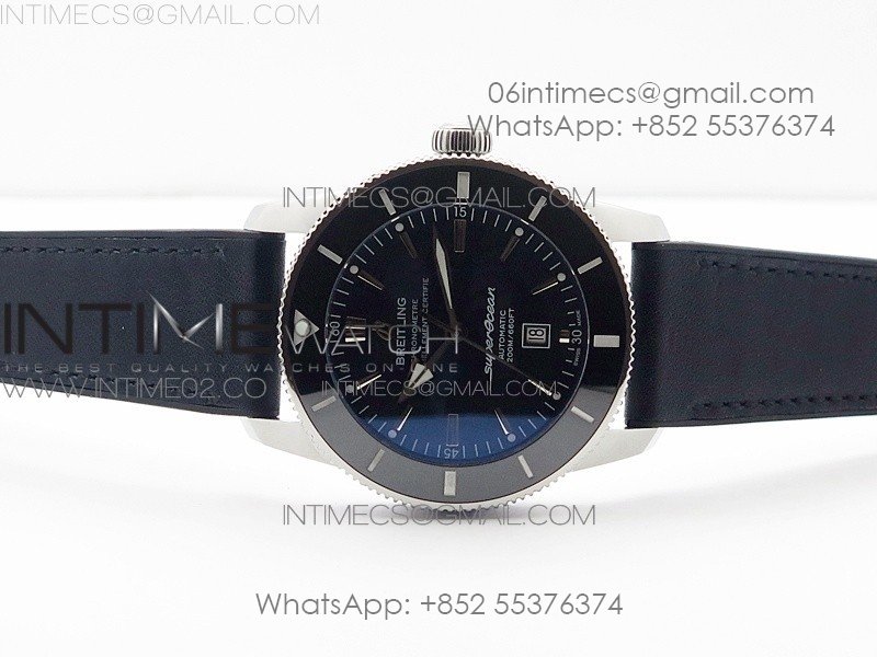 Super Ocean Heritage Black Ceramic Bezel SS Black Dial on Black Gummy Strap A2824