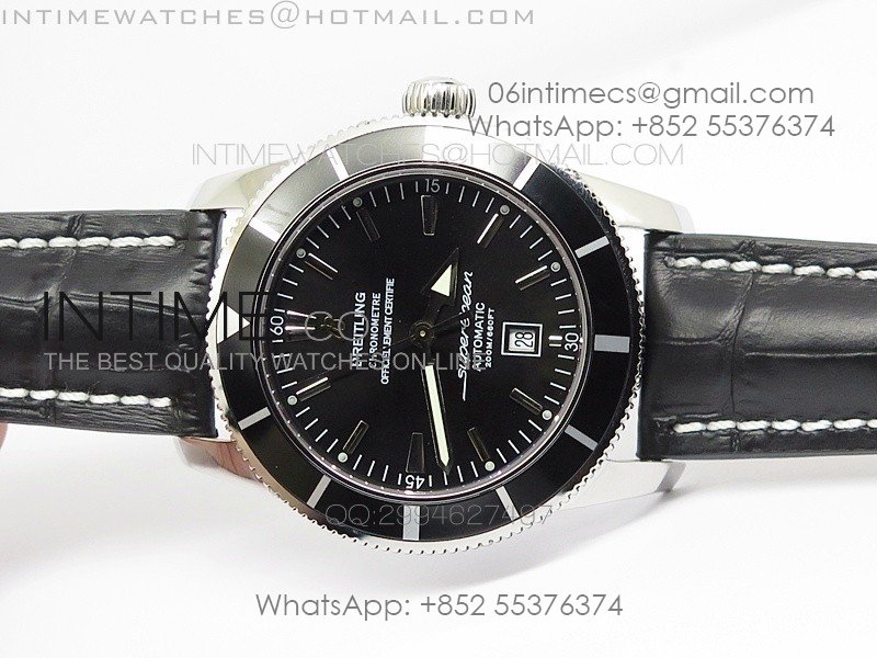 Super Ocean Heritage SS Black Dial on Black Leather Strap A2824