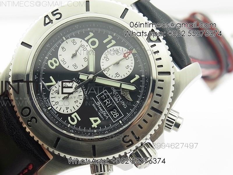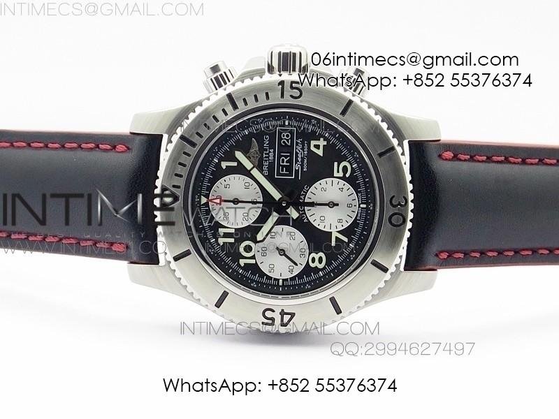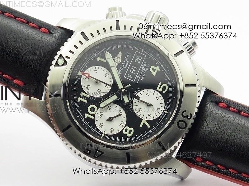 SuperOcan SteelFish SS Black Dial on Black Leather Strap A7750