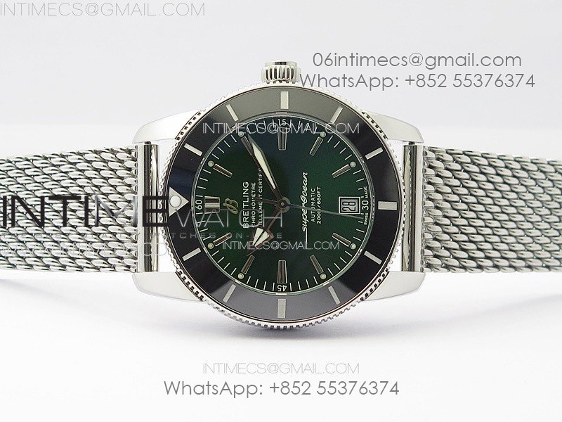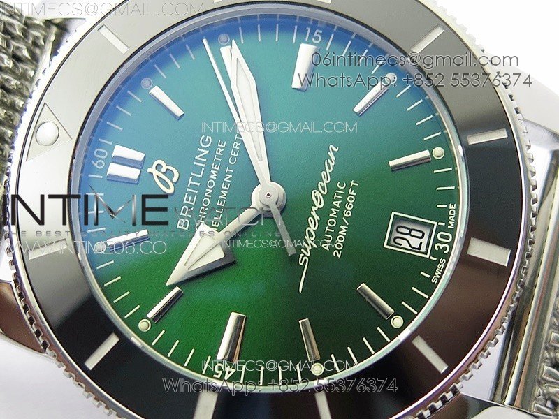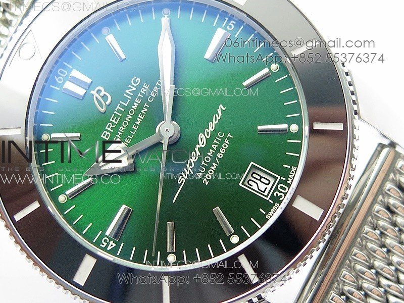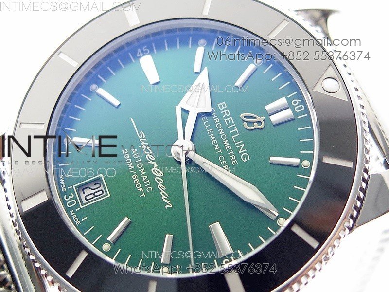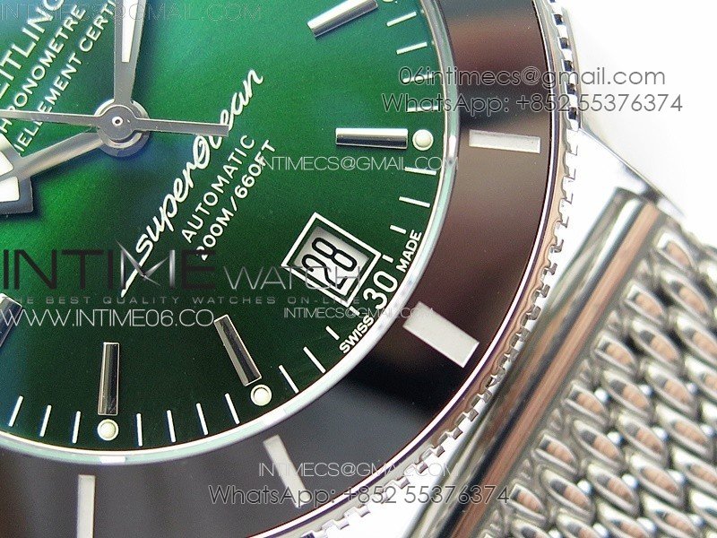 SuperOcean 42mm AB2010 SS B50 1:1 Best Edition Green Dial Black Ceramic Bezel on SS Bracelet A2824