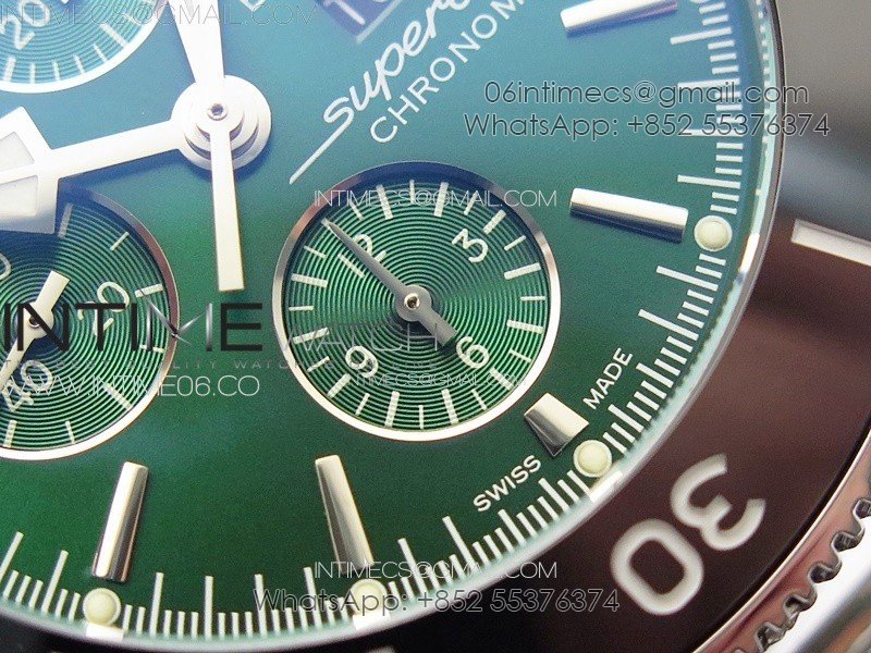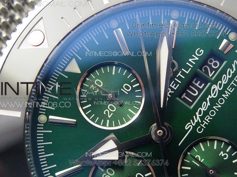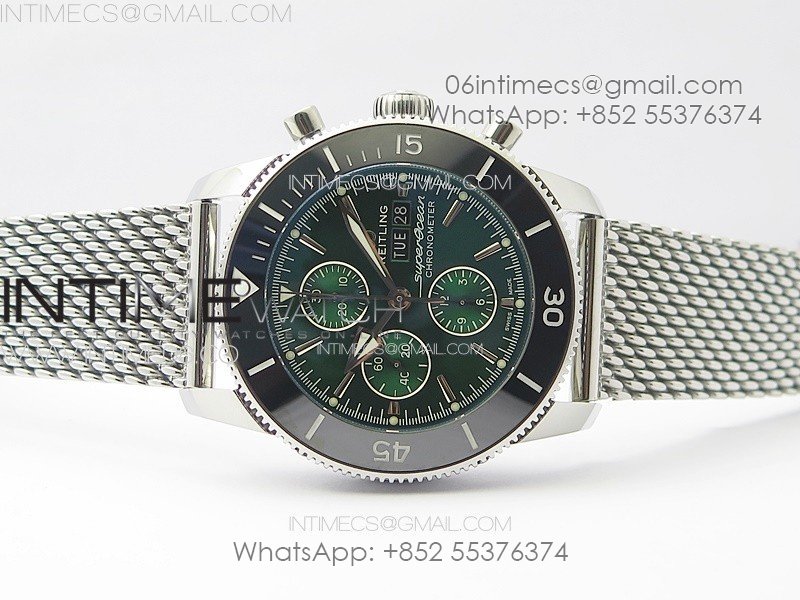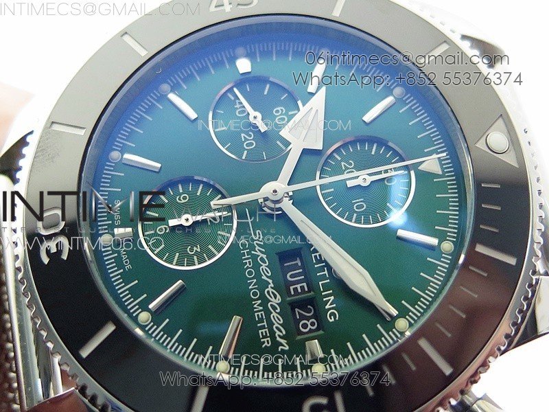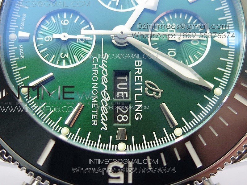 SuperOcean 46mm Black Ceramic Bezel B50 Best Edition Green Dial Green Subdials on SS Bracelet A7750