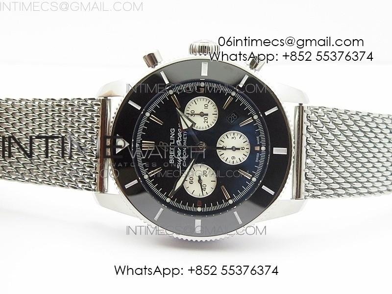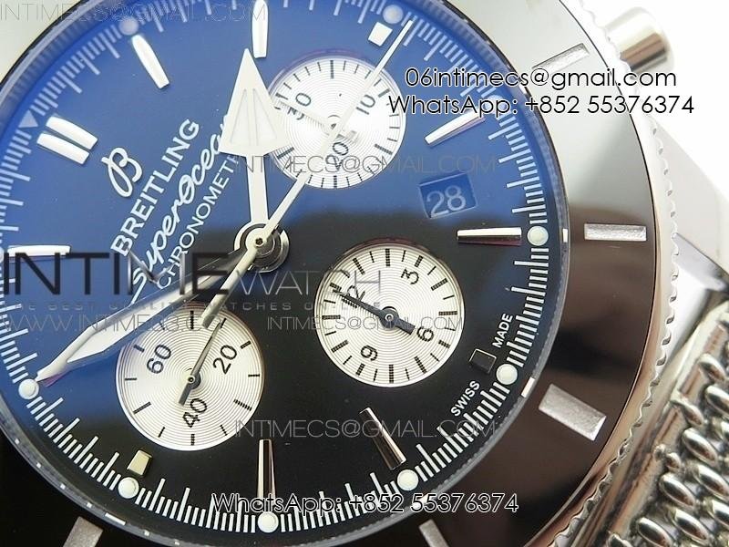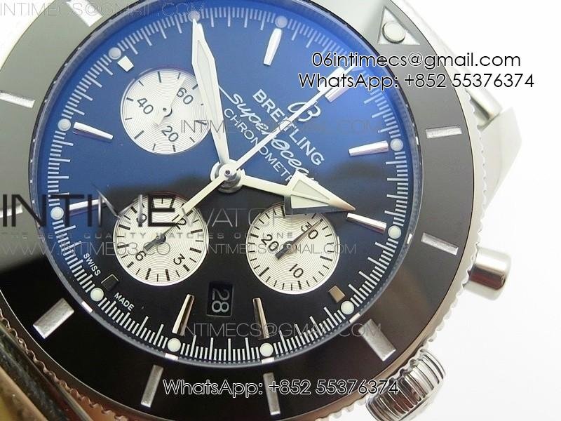 SuperOcean 46mm Black Ceramic Bezel Black Dial on SS Bracelet / Gummy Strap A7750