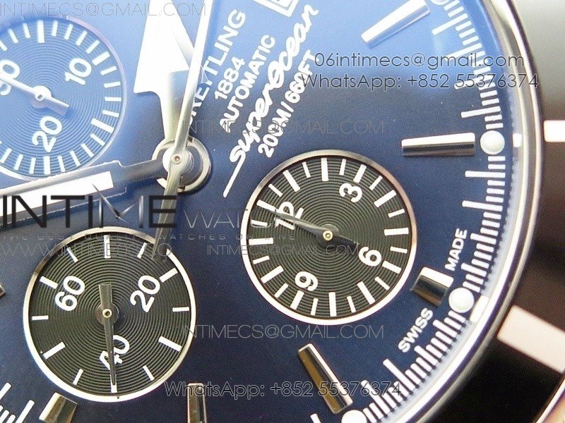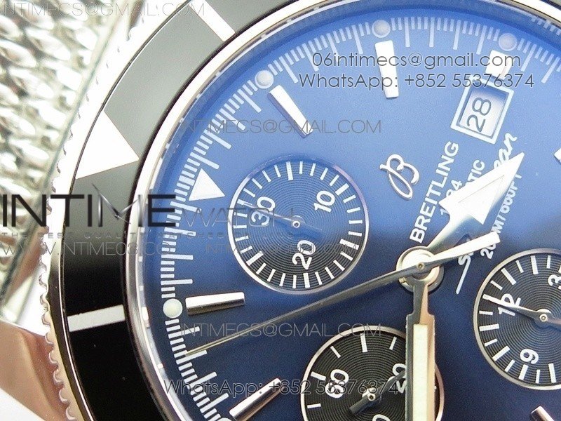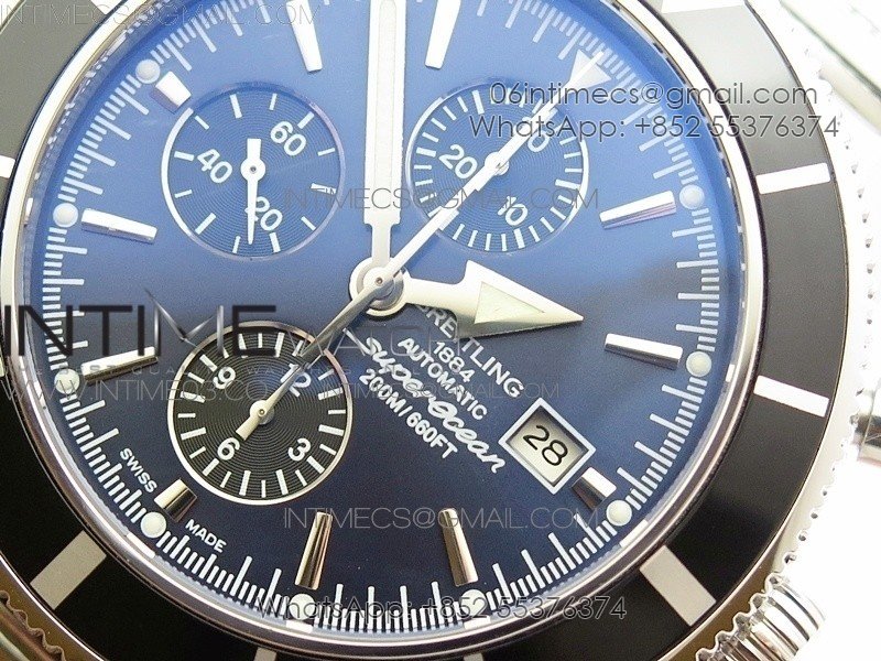 SuperOcean A13312 46mm Black Bezel Blue Dial/black subdial on SS Bracelet A7750