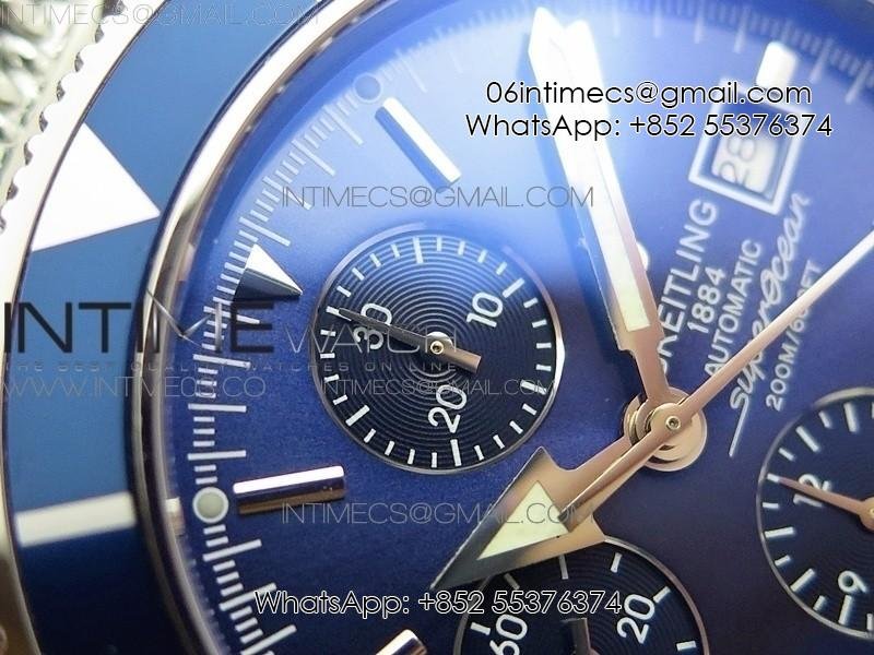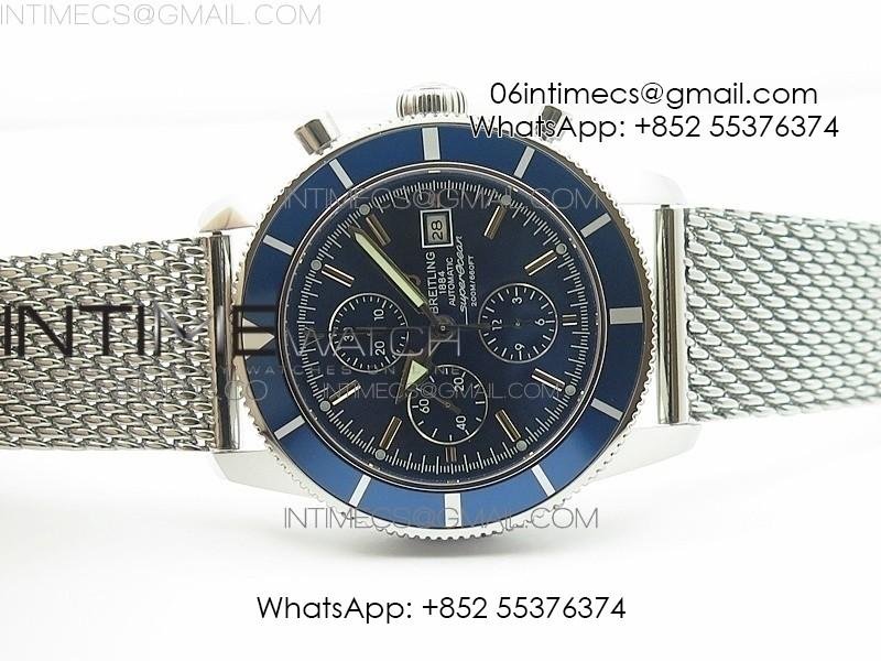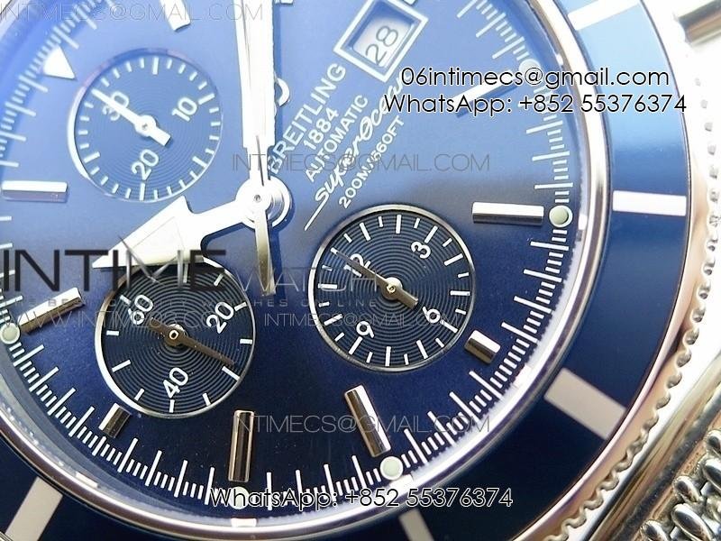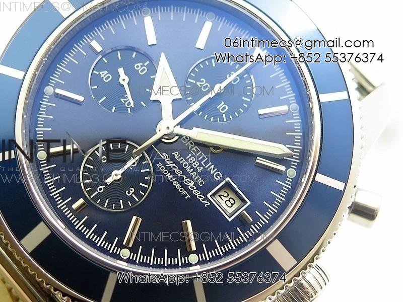 SuperOcean A13312 46mm Blue Bezel Blue Dial on SS Bracelet A7750