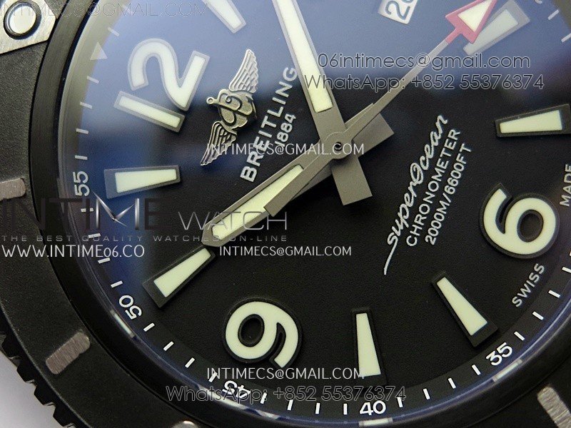 SuperOcean Automatic 44mm DLC TF 1:1 Best Edition Black Dial on Black Rubber Strap A2824