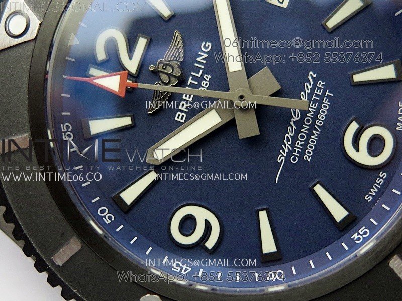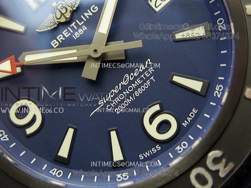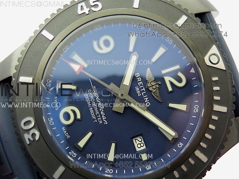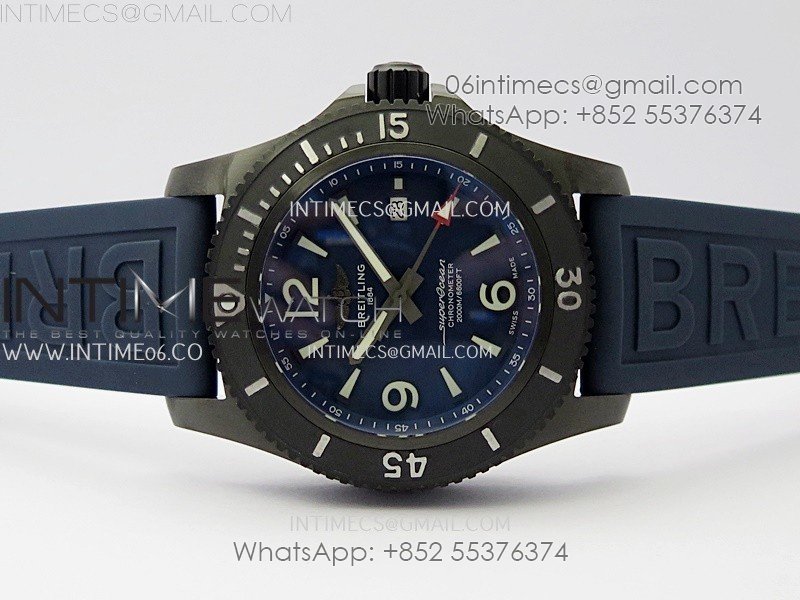 SuperOcean Automatic 44mm DLC TF 1:1 Best Edition Blue Dial on Black Rubber Strap A2824