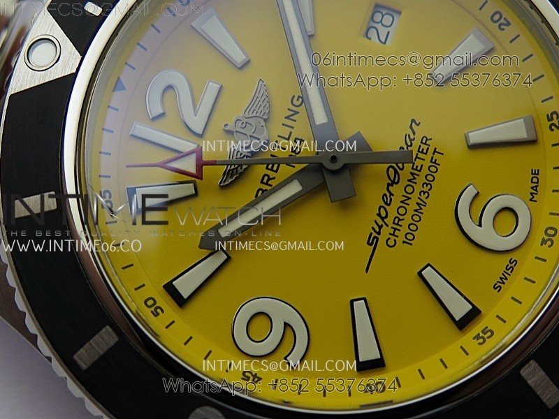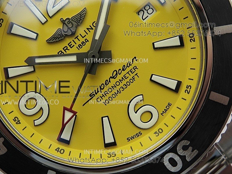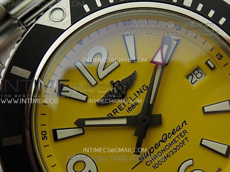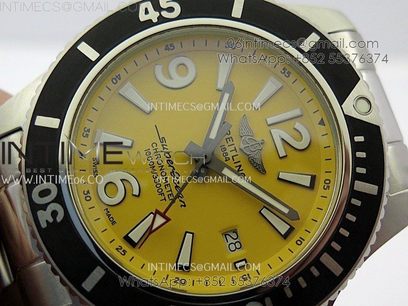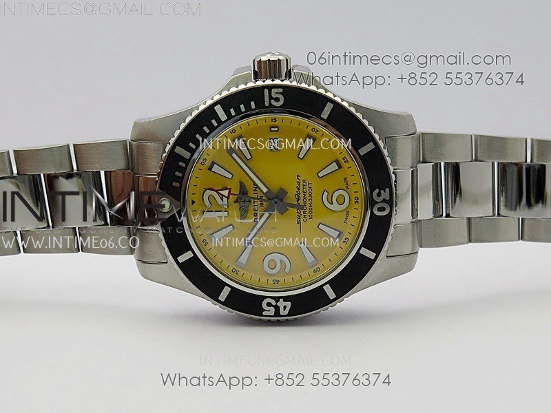 SuperOcean Automatic 44mm TF 1:1 Best Edition Yellow Dial Black Bezel on SS Bracelet A2824