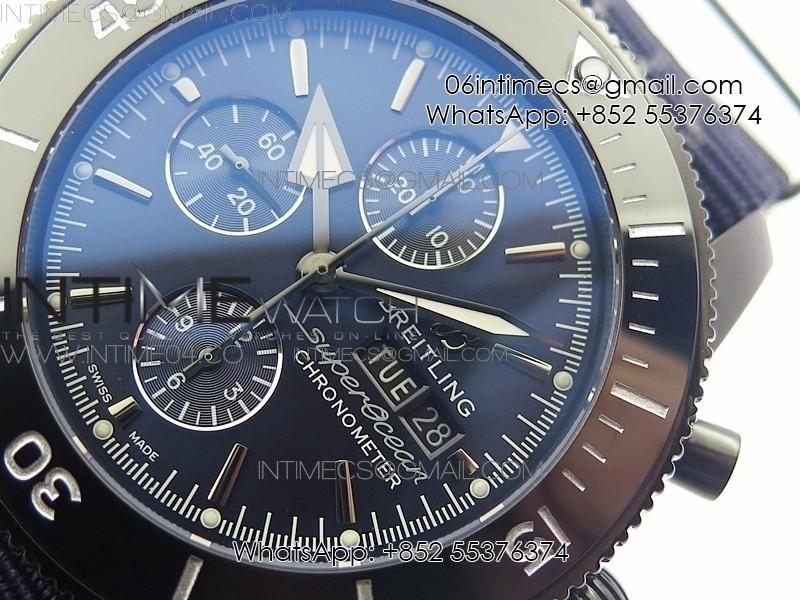 SuperOcean OuterNown 46mm B50 Black Ceramic Bezel Blue Dial on Blue Nylon Strap A7750