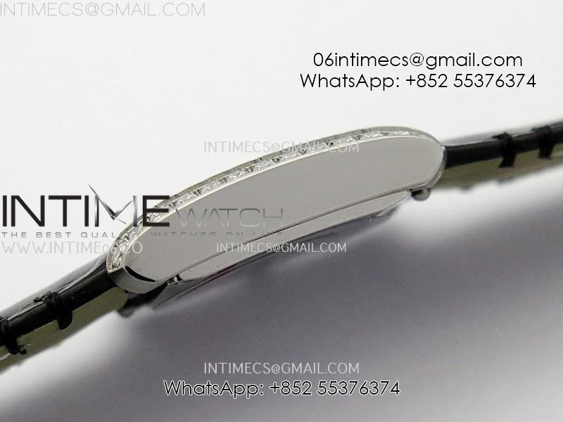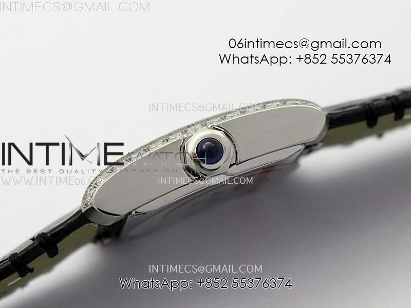 Tank Francaise Ladies 21.2mm Diamond Bezel SS 8848F 1:1 Best Edition Silver Dial on Black Leather Strap Ronda Quartz V2
