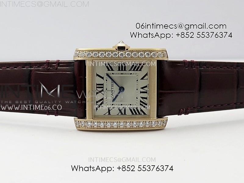 Tank Francaise Ladies 27mm Diamond Bezel RG 8848F 1:1 Best Edition Silver Dial on Red Leather Strap Ronda Quartz V2