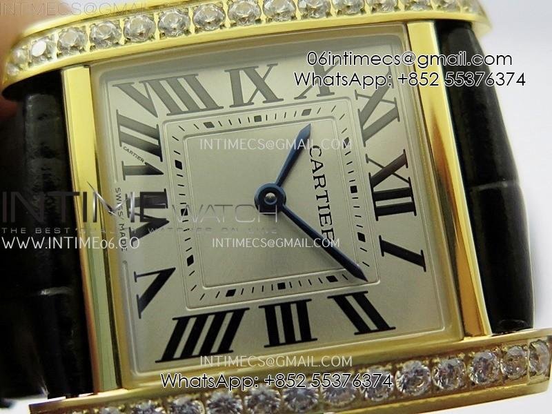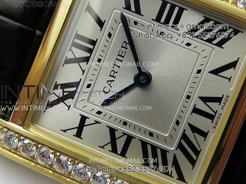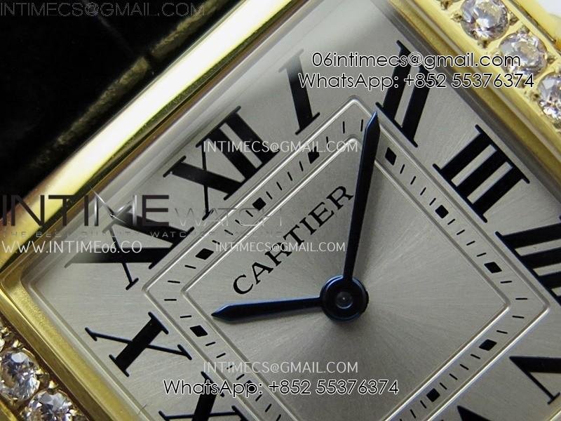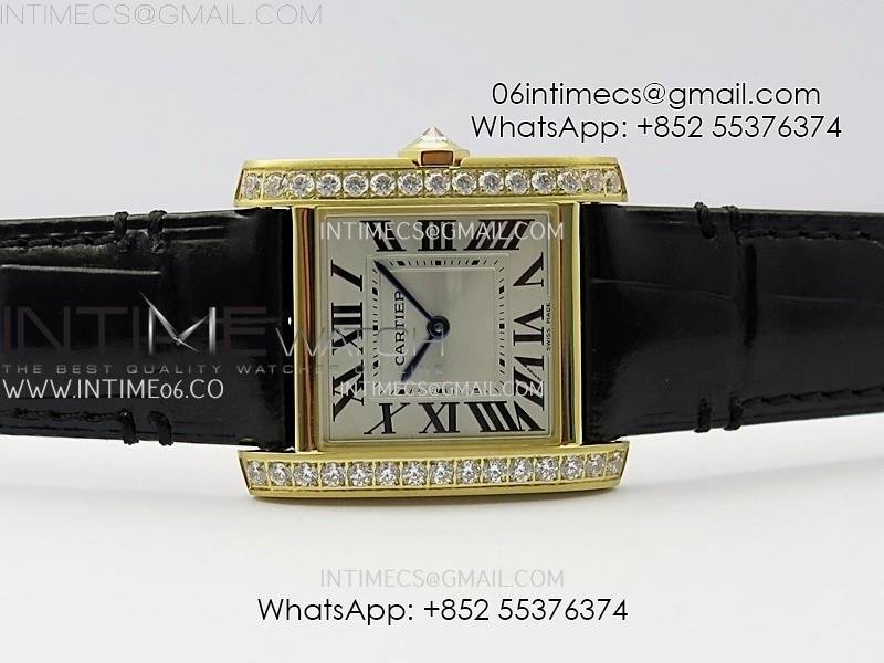 Tank Francaise Ladies 27mm Diamond Bezel YG 8848F 1:1 Best Edition Silver Dial on Black Leather Strap Ronda Quartz V2