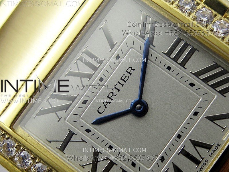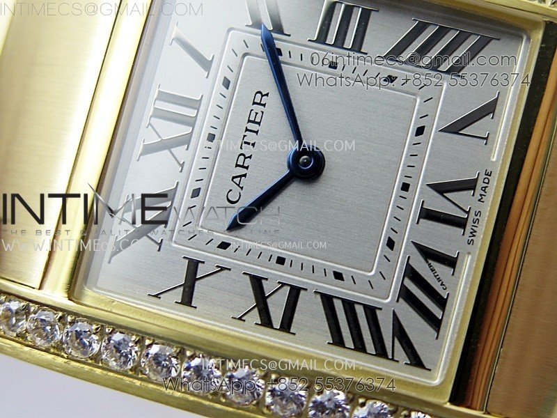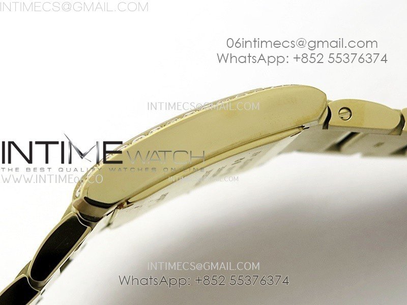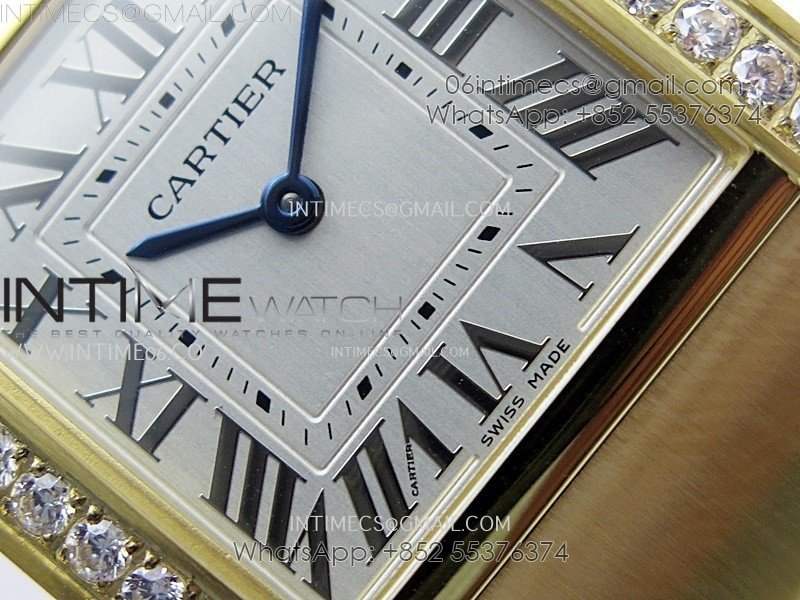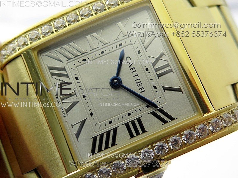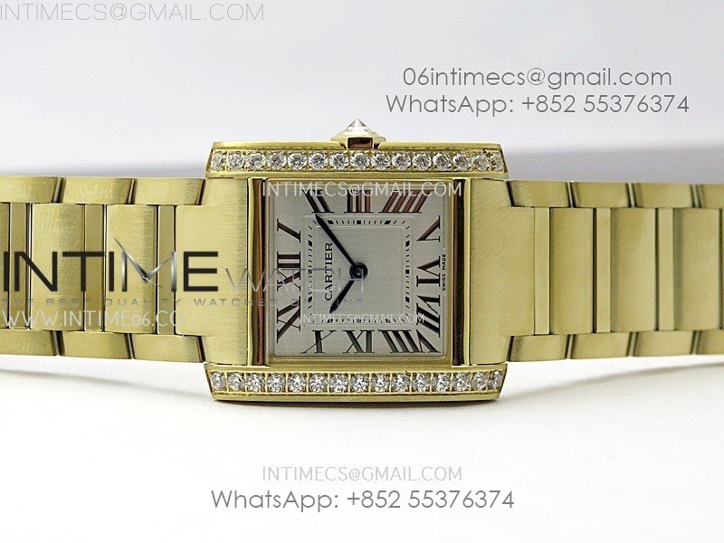 Tank Francaise Ladies 27mm YG/Diamonds Bezel 8848F 1:1 Best Edition Silver Dial on YG Bracelet Ronda Quartz