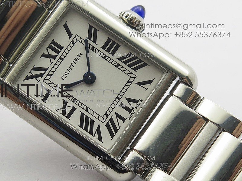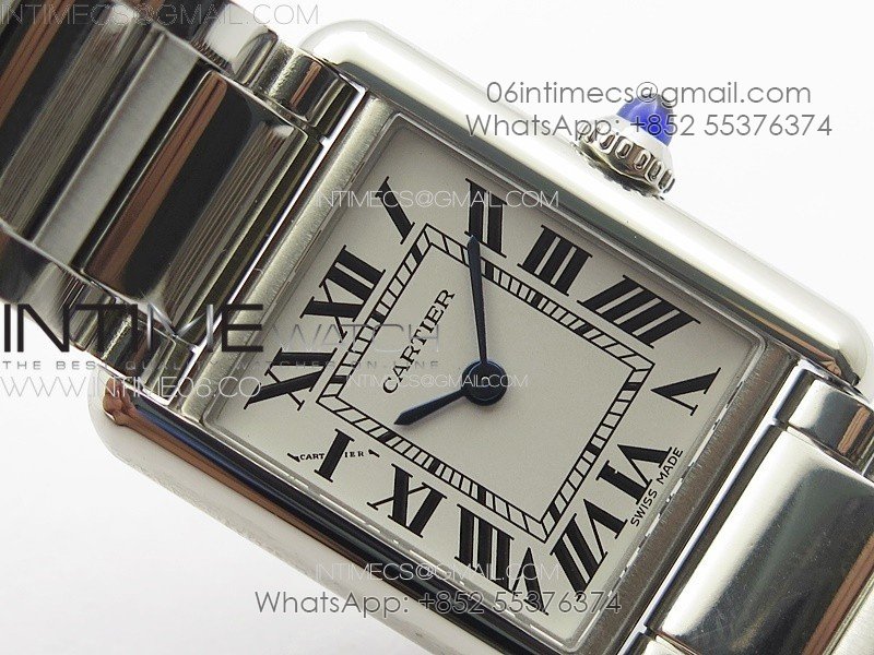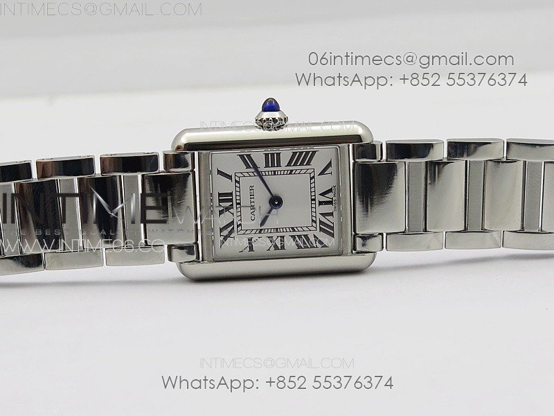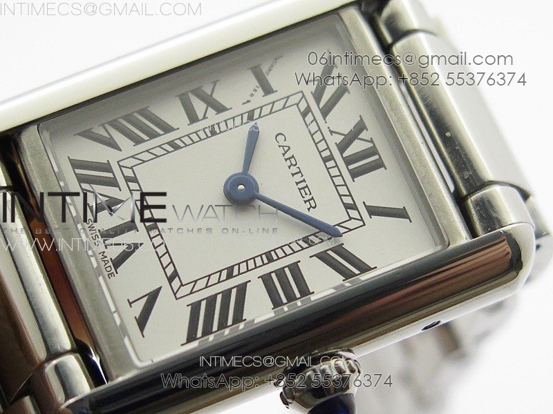 Tank Louis Ladies 22mm SS 8848F 1:1 Best Edition White Dial on SS Bracelet Ronda Quartz(Free leather strap)