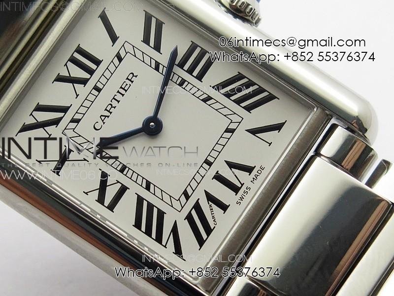 Tank Louis Ladies 25mm SS 8848F 1:1 Best Edition White Dial on SS Bracelet Ronda Quartz(Free leather strap)