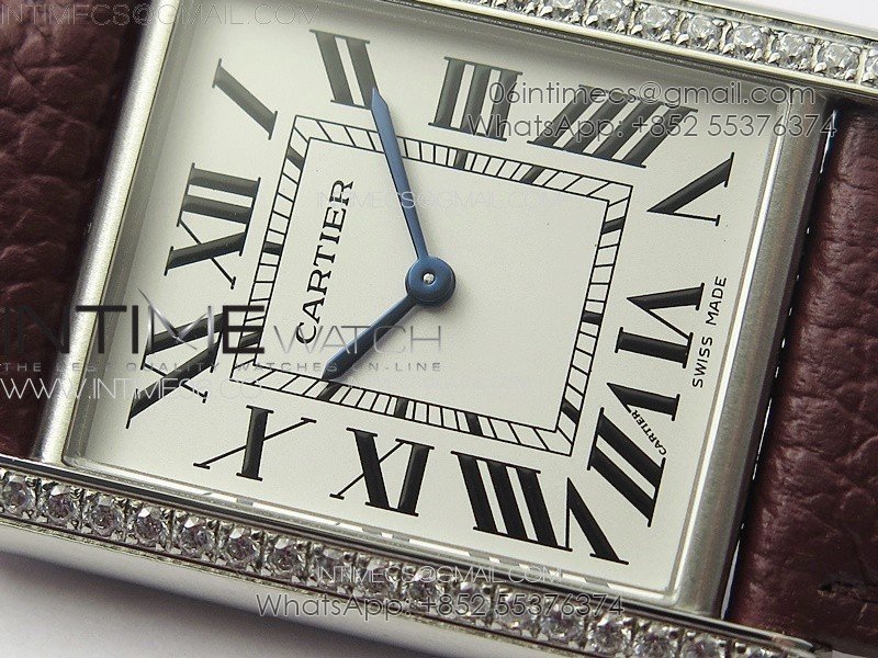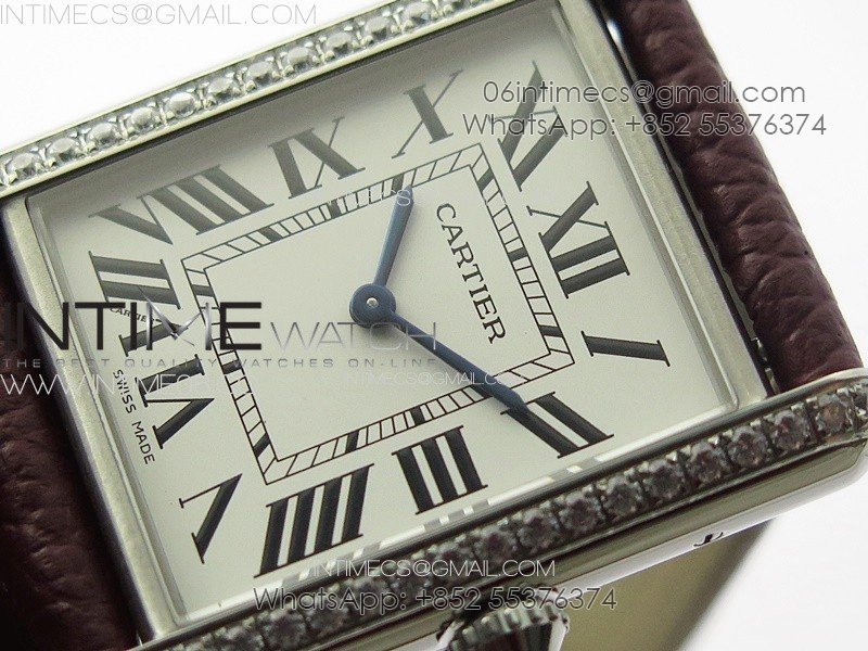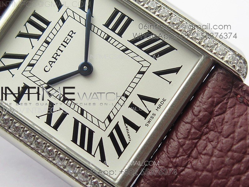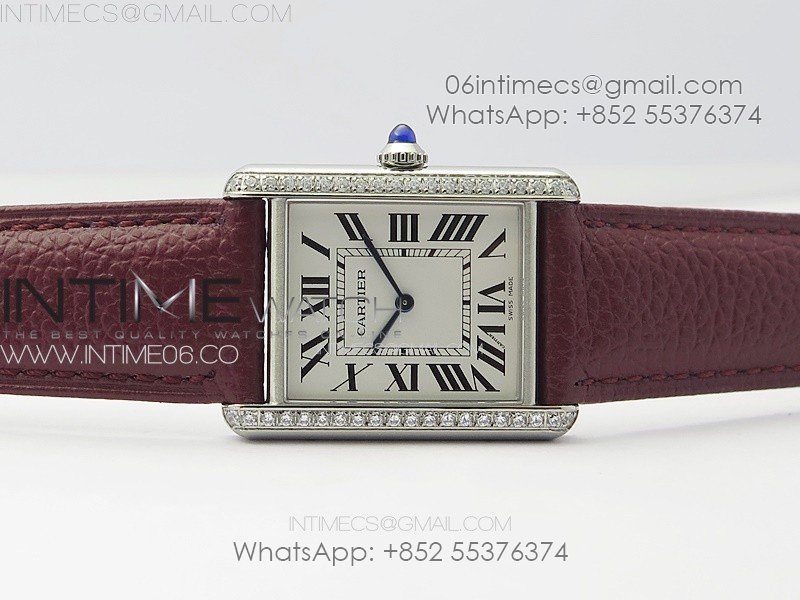 Tank Louis Ladies 25mm SS/Crystal 8848F 1:1 Best Edition White Dial on Dark Red Leather Strap Ronda Quartz