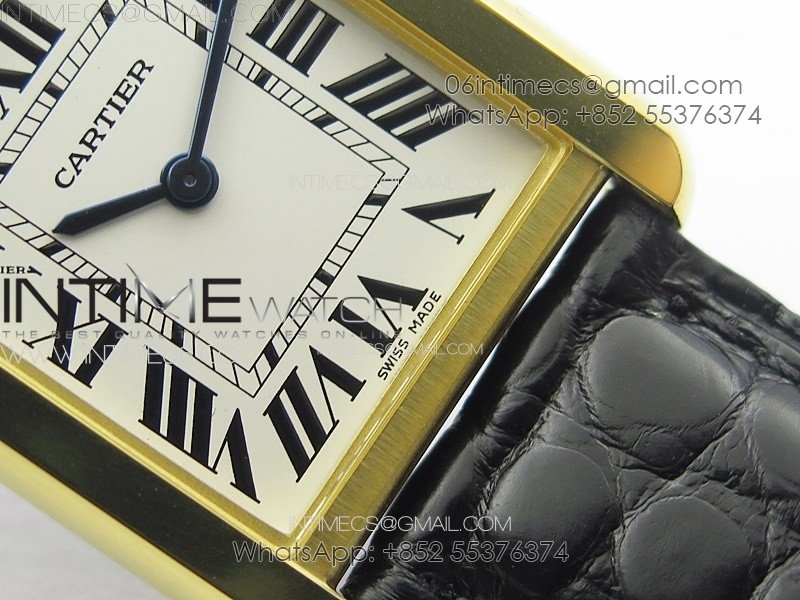 Tank Solo Ladies 25mm YG K11F 1:1 Best Edition White Dial on Black Leather Strap Ronda Quartz