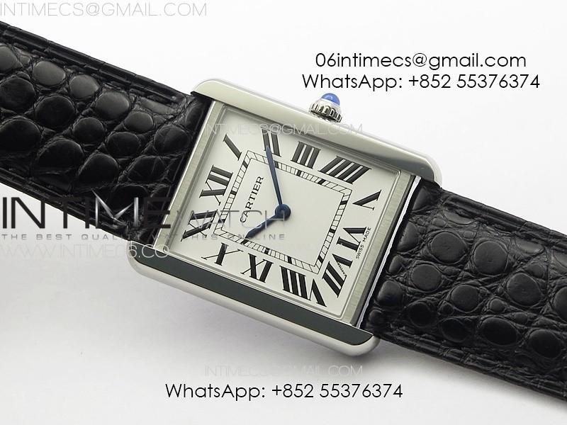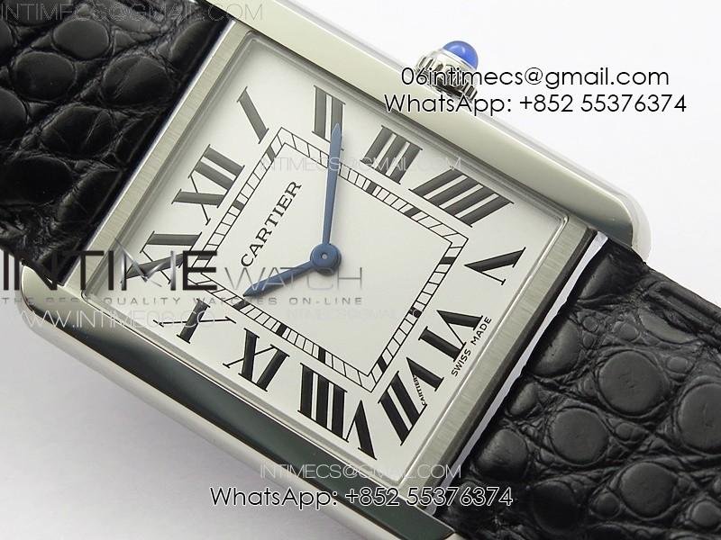 Tank Solo Ladies 28mm SS K11F 1:1 Best Edition White Dial on Black Coroc Leather Strap Ronda Quartz