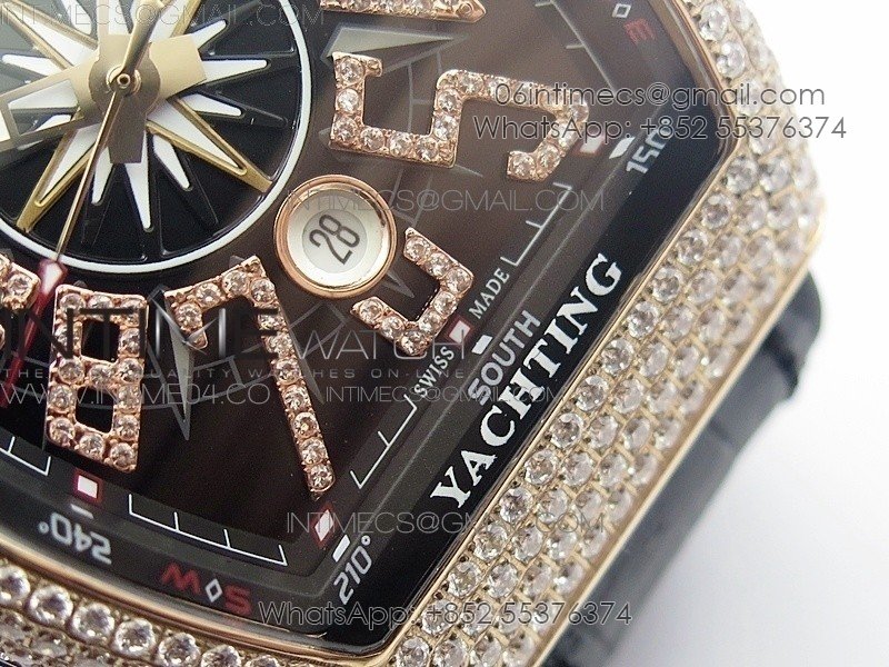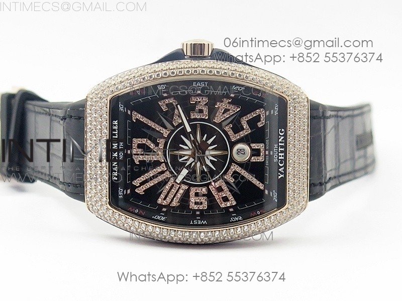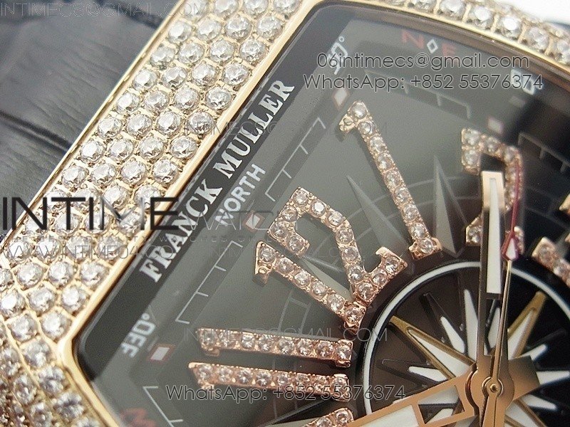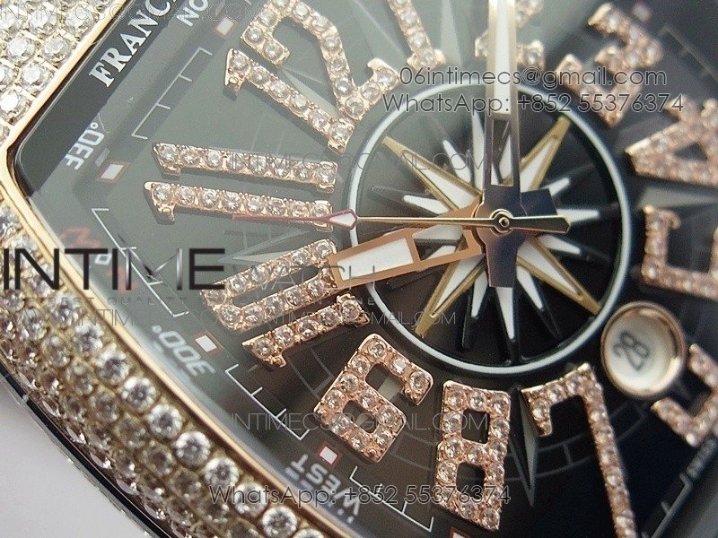 Vanguard V45 RG Full Diamonds Black Textured Diamonds Markers on Black Gummy Strap A2813