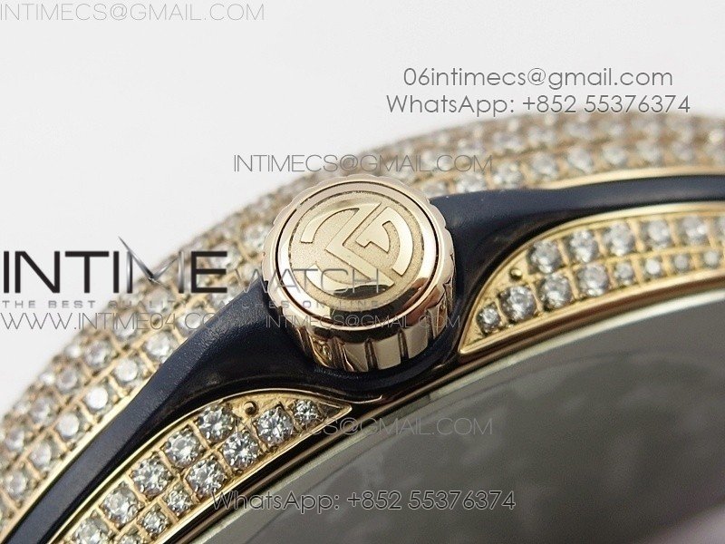 Case 18K rose gold plated Solid 316L stainless steel case, full paved diamonds