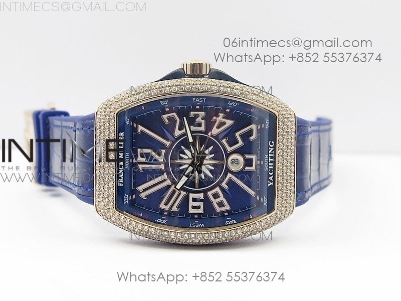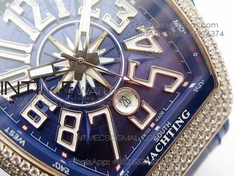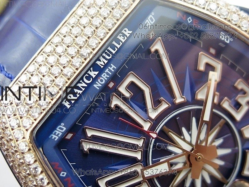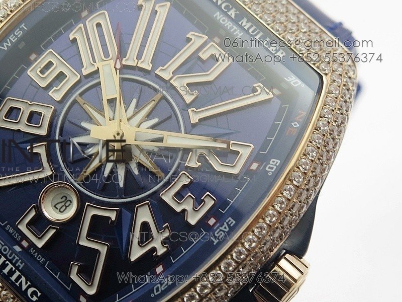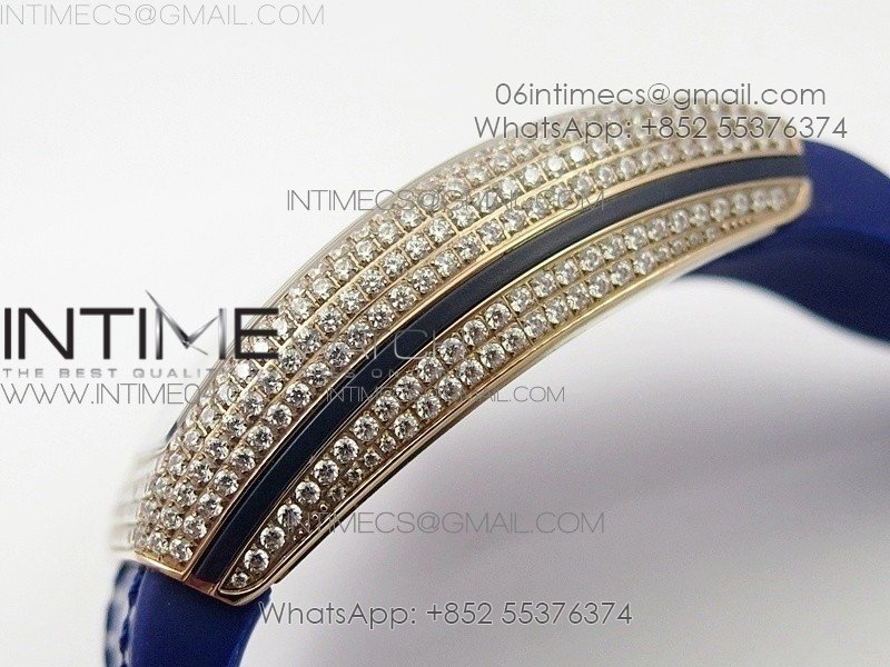 Vanguard V45 RG Full Diamonds Blue Textured Numbers Markers on Blue Gummy Strap A2813