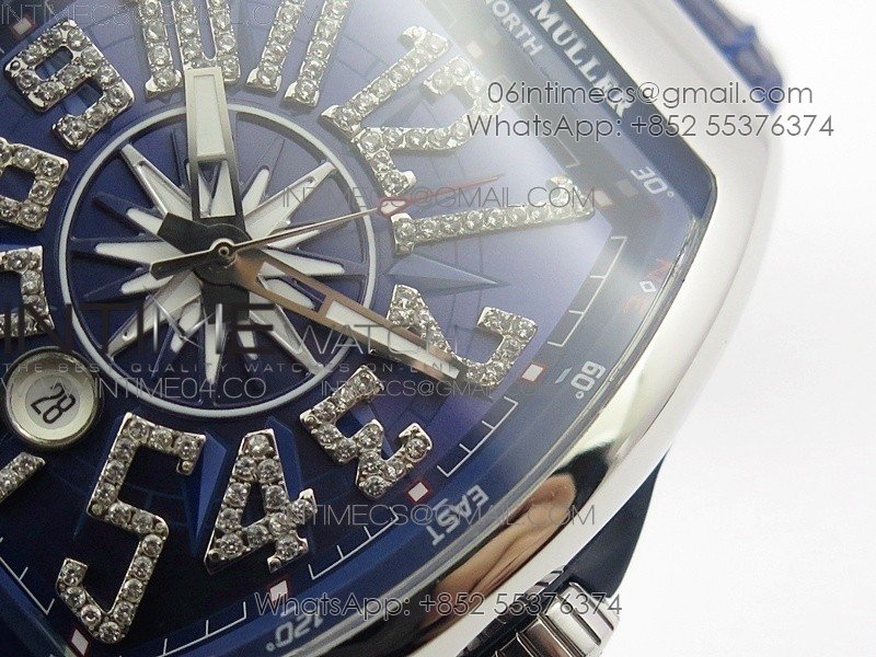 Vanguard V45 SS ABF Best Edition Blue Dial Diamonds Markers on Blue Gummy Strap A2813