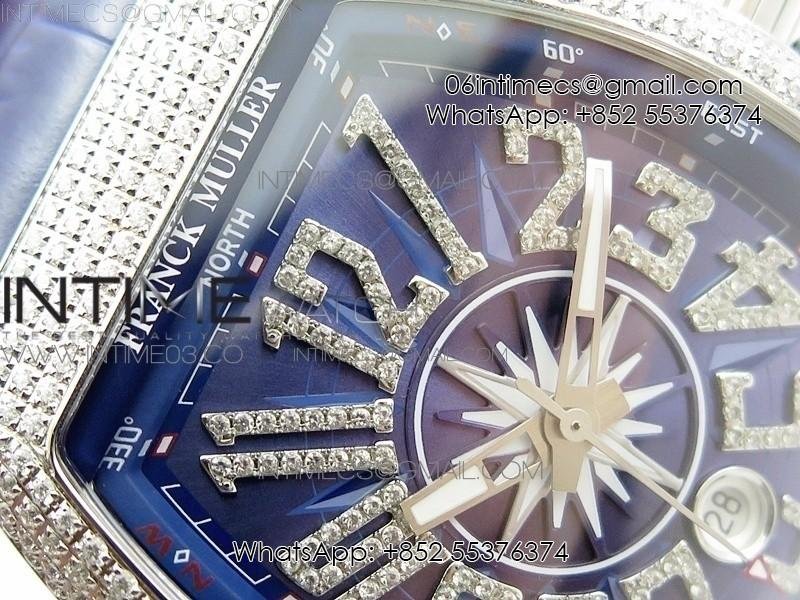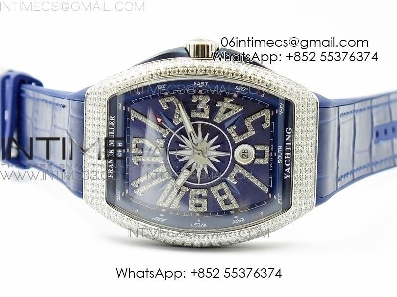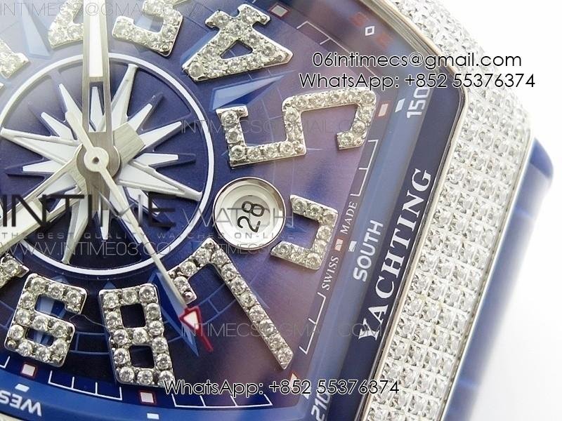 Vanguard V45 SS Full Diamonds ABF Best Edition Blue Textured Dial Diamonds Markers on Blue Gummy Strap A2824