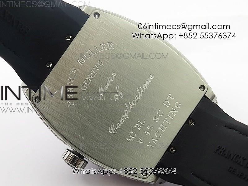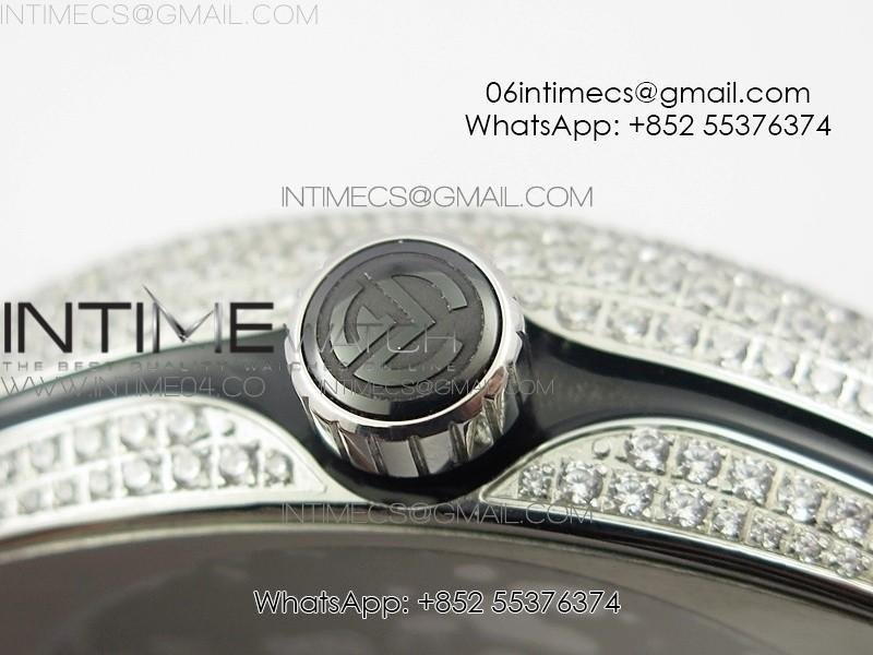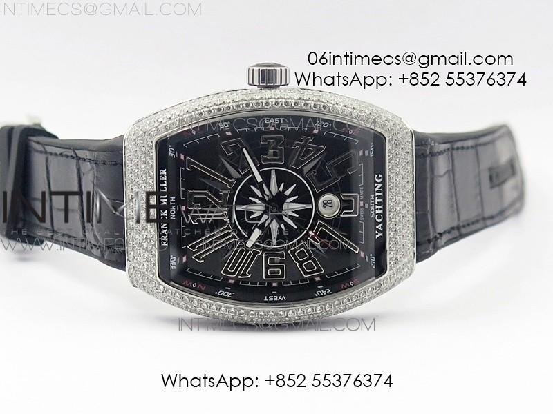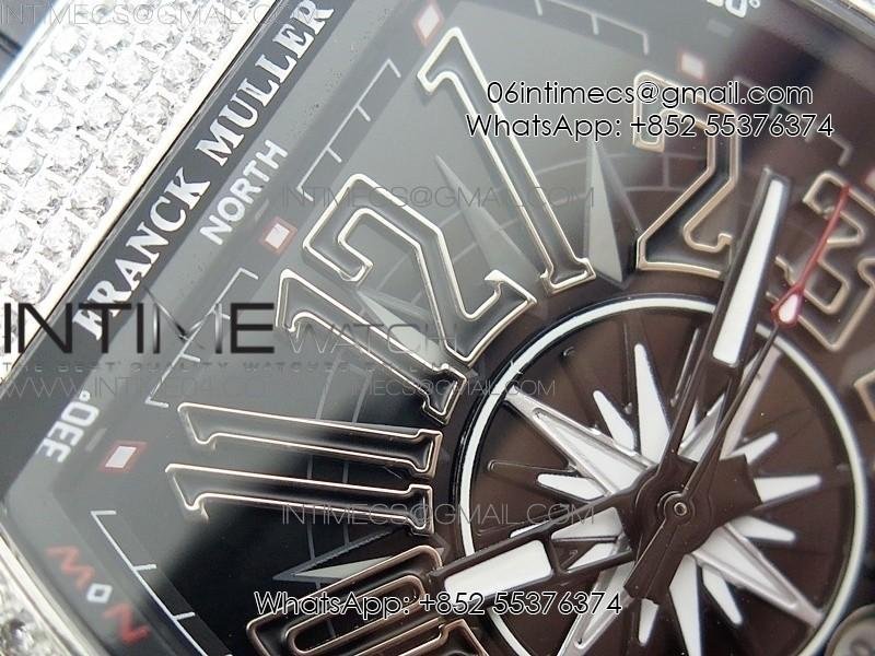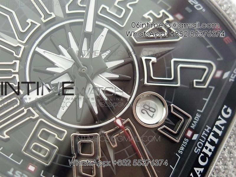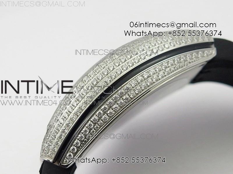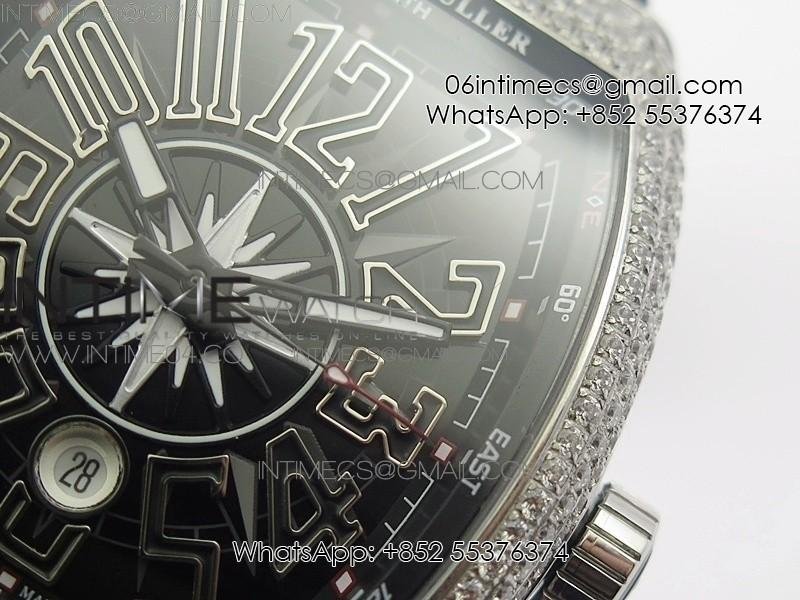 Vanguard V45 SS Full Diamonds Black Textured Numbers Markers on Black Gummy Strap A2813