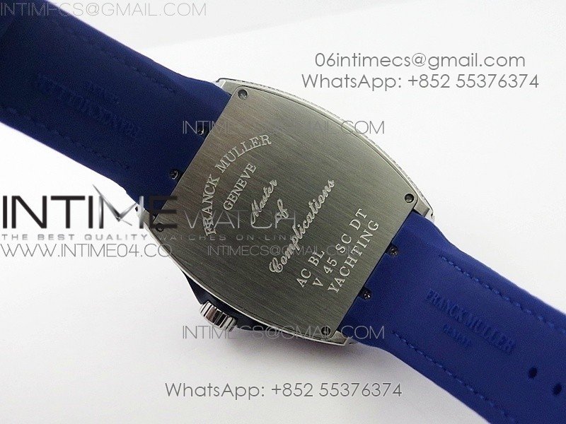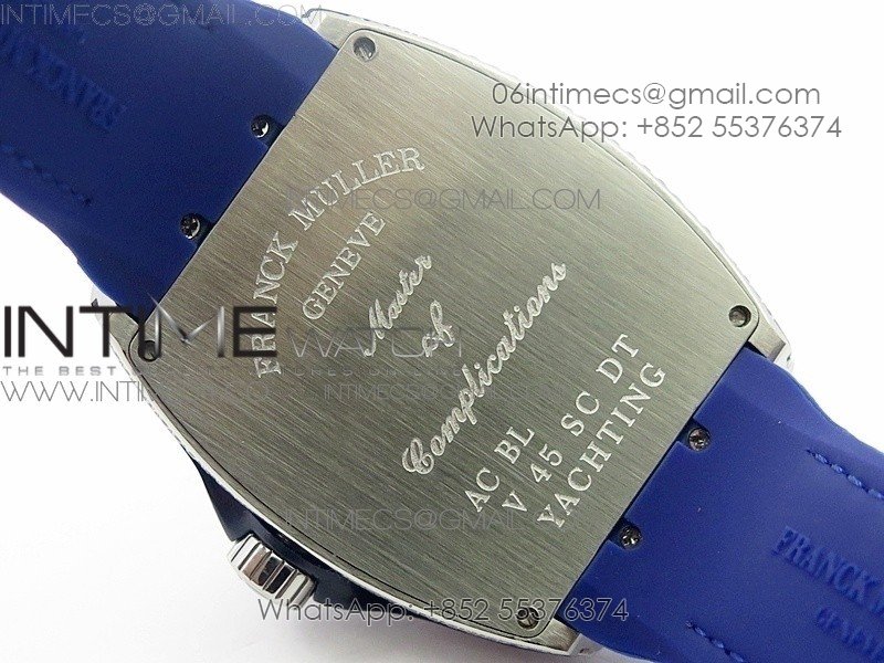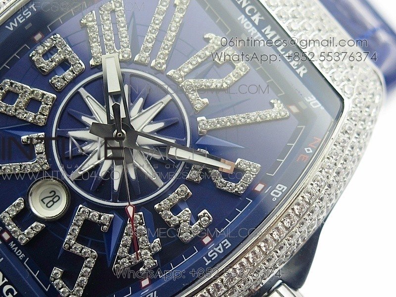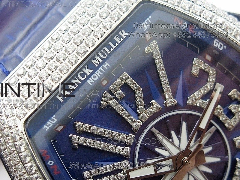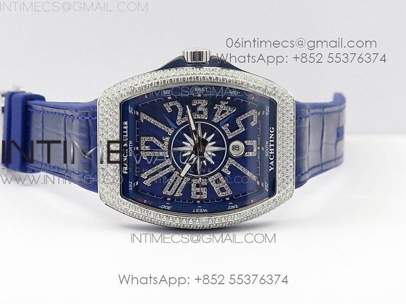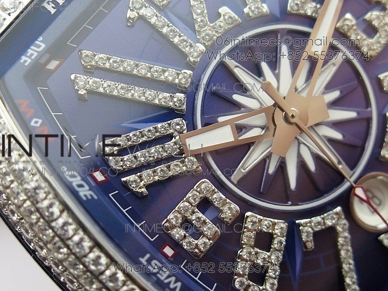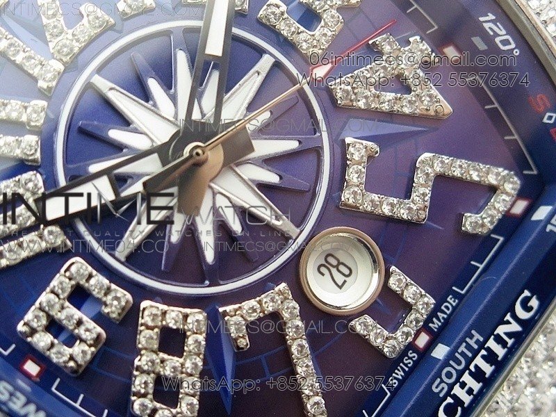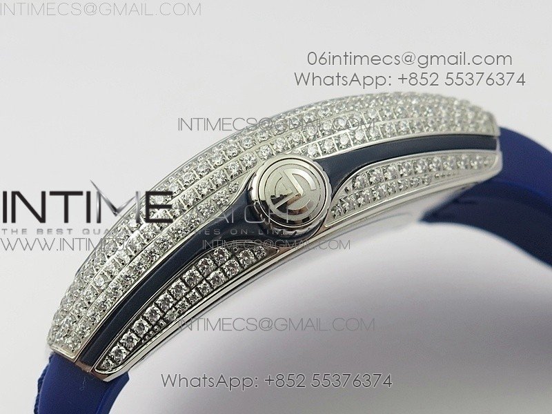 Vanguard V45 SS Full Diamonds Blue Textured Diamonds Markers on Blue Gummy Strap A2813