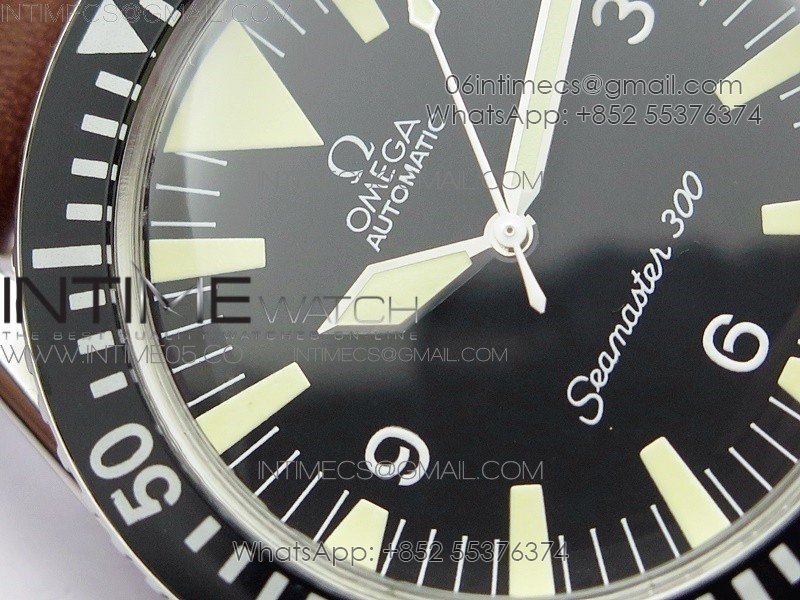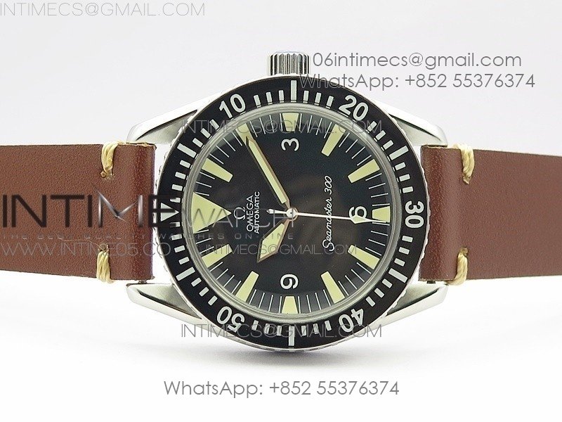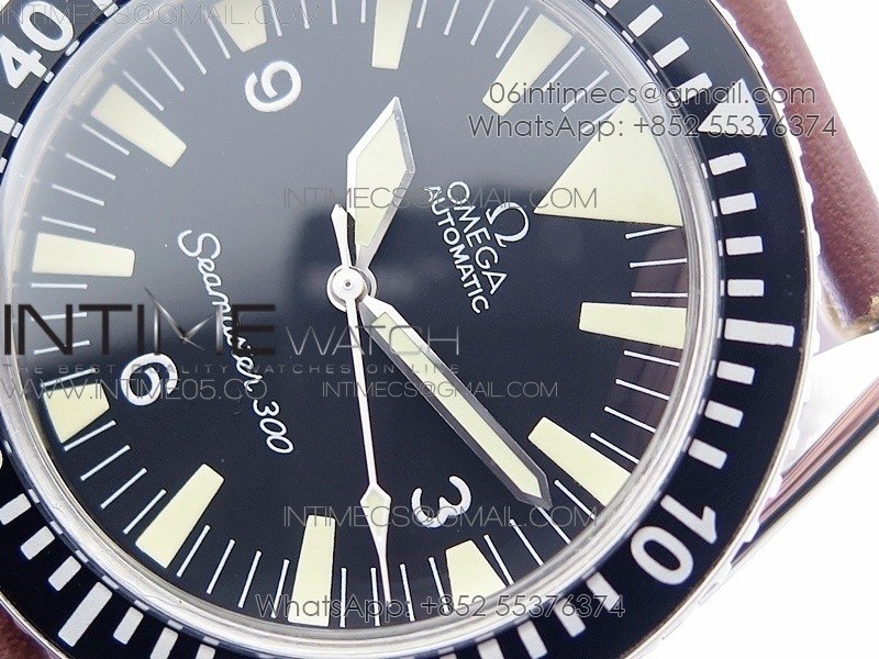 Vintage Seamaster 300 No Date SS B12 Black Dial On Brown Leather Strap A-2836 (Free Nylon Strap)