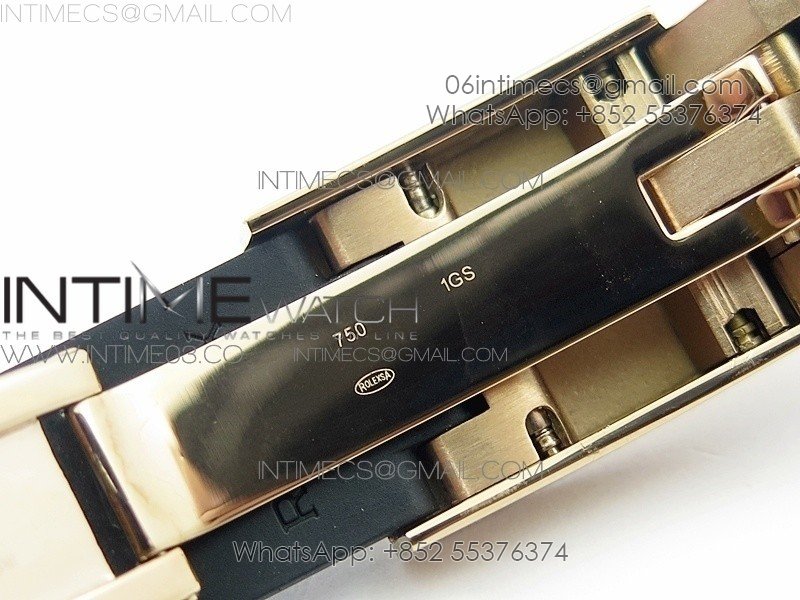 Case 18K rose gold plated 1:1 high quality 904L stainless steel case, screw-in back and crown, deep engraved rehaut and lugs, random serial number engraved at 6:00 of the rehaut. Different random serials